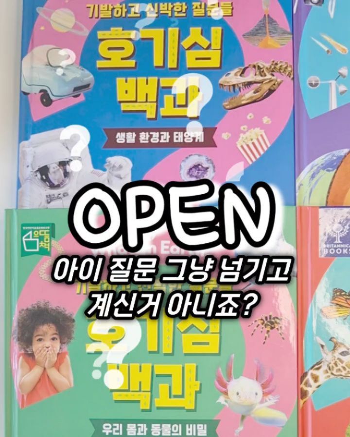 🧏♀️이제 "엄마 나 이거 왜그래❓️"피하지 마세요👏 🔛브리태니커 호기심 백과 OPEN 브리태니커 기발하고 신박한 질문들 이 책, 한마디로 정리하면 📚 “엄마 대신 대답해주는 책”이에요 ✔ 아이들이 실제로 궁금해하는 질문 위주 ✔ 길지 않고 딱 집중 가능한 설명 ✔ 사진 + 그림으로 바로 이해 그래서📖읽어주다가 힘든 책이 아니라 아이랑 대화가 이어지는 책이에요 예를 들면 이런 질문들 🤍 ✔ “왜 하늘은 파란색일까?” ✔ “음식은 어떻게 우리 몸이 될까?” ✔ “문어 다리에는 왜 빨판이 있을까?” 🤔엄마도 순간 멈칫했던 질문들 이제는 당황하지 않아도 됩니다 ✔ 이 책으로 달라지는 점 “몰라…” → “같이 볼까?” 질문 → 이해 → 또 질문 결국 자기주도 학습으로 이어져요 👍 ✔ 구성 안내 드릴게요 📌 WHY5세~ “왜?” 질문 시작됐다면 딱 이 시기 📌 HOW 7세~ 원리까지 궁금해지기 시작하는 시기 📌 4권 전체 구성 단계별로 이어져 있어서 쭉 보기 좋은 구성이에요 💡읽다 보면 WHY에서 HOW까지 자연스럽게 이어져요 🤍 이런 아이에게 추천해요 ✔ 질문 많은 아이 ✔ 자연 / 과학 / 인체에 관심 많은 아이 ✔ “왜?”를 자주 묻기 시작한 아이 250년 전통 Encyclopaedia Britannica 전문가 검증 콘텐츠라 더 믿고 보여줄 수 있어요 이건 아이 책이기도 하지만 엄마, 아빠를 위한 책이기도 해요 🤍 계속 물어보는 아이에게 제대로 답해줄 수 있다는 안정감 이거 하나로 훨씬 편해집니다 🙂 이 시기 지나면 질문도 점점 줄어들어요 지금이 딱 잡아주기 좋은 타이밍이에요 공구가로 보여드리는 지금이 부담 없이 시작하기 좋은 기회 🙌 놓치지 마세요 🤍 📅공구일정 : 4월 17일~4월 23일 🚚배송일정 : 주문 후 1-2일 소요/3권 이상 구매 시 무료배송(배송비 3,000원) ❤️구매 및 상품문의는 댓글또는 디엠 부탁드려요 ♥️프로필 하단링크 클릭 바로 구매가능하세요 💌댓글로 "링크" 적으면 구매링크 디엠 전송 ㅡㅡㅡㅡㅡㅡㅡㅡㅡㅡㅡㅡㅡㅡㅡㅡㅡㅡㅡㅡ 🎁구매완료 이벤트 1️⃣구매 완료 후 댓글로 인증(구매완료 이름) 예) 구매완료 김희정 2️⃣공구 마감 추첨하여 스타벅스 커피 쿠폰 보내드릴께요 (팔로워 분들만 이벤트 신청 가능해요) ㅡㅡㅡㅡㅡㅡㅡㅡㅡㅡㅡㅡㅡㅡㅡㅡㅡㅡㅡㅡ