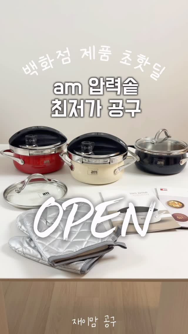 am 압력솥 최저가 공구 오픈! 압력 요리 좋아하시는 분이라면 이번 최저가 기회 놓치지 마세요! 백화점 동일 제품을 할인 팍팍해드려용~🔥🔥 👉 최저가 링크 필요하신 분 '링크' 댓글 남겨주시면 최저가 링크 보내드릴께요! 📌 재이맘 @_jayi_jayi_ 프로필링크에서 구매 가능 🎁구매자 전원 선물🎁 유리뚜껑 + 주방장갑(한쌍)+레시피북+사용설명서 🎁구매인증 이벤트 AM 국자 컬러랜덤 10명 네이버페이 1만원 10명 공구 종료 2주 후 인스타, 유튜브, 블로그, 틱톡 합산해서 추첨하여 선물 보내드려요~ 구매 완료하신 분들은 구매완료 / 성함 / 휴대폰 뒷자리를 남겨주세요!! ✅ 예) 구매완료 / 장X이 / 1234 3단계 압력으로 맛있는 요리 함께 해봐요! 저압/중고압/초고압 요리를 집에서 간단하게 뚝딱! 1.6L의 2~3인용 크기라 신혼 부부 및 2~3인 가구에 추천드려요! 평소엔 그냥 일반 냄비처럼도 사용 가능하고 오랜 시간 필요한 요리는 압력으로 시간 단축해서 사용하니까 자꾸만 손이 가는 제품이예요! ✅316Ti 통 3중 압력솥으로 뛰어난 내식성, 내구성 ✅아이보리 / 로즈레드 / 리치블랙 총 3가지 컬러 ✅백화점 입점 브랜드 am ✅두꺼운 2.5T 스텐 사용 ✅3단계 압력 조절 가능 >저압요리, 중고압요리, 초고압요리 ✅에너지+시간 절약 ✅고압력으로 빠른 요리 시간 가능 ✅편리한 내부 용량 표시 ✅내부 이음새가 없어서 간편한 세척 가능 ✅가스, 인덕션, 하이라이트 등 다양한 열원 사용 가능 (전자레인지 제외) ✅안심 사용 6단계 안전장치 ✅원터치로 간편하게 열고 닫기 가능 ✅유리뚜껑으로 교체 해서 일반 냄비로 활용 ✅컴팩트한 사이즈로 보관도 편리함 ✅백화점 제품이라 선물용으로도 좋아요 ~4/5까지 #압력솥 #am압력솥 #미니압력밥솥 #압력솥공구 #냄비추천