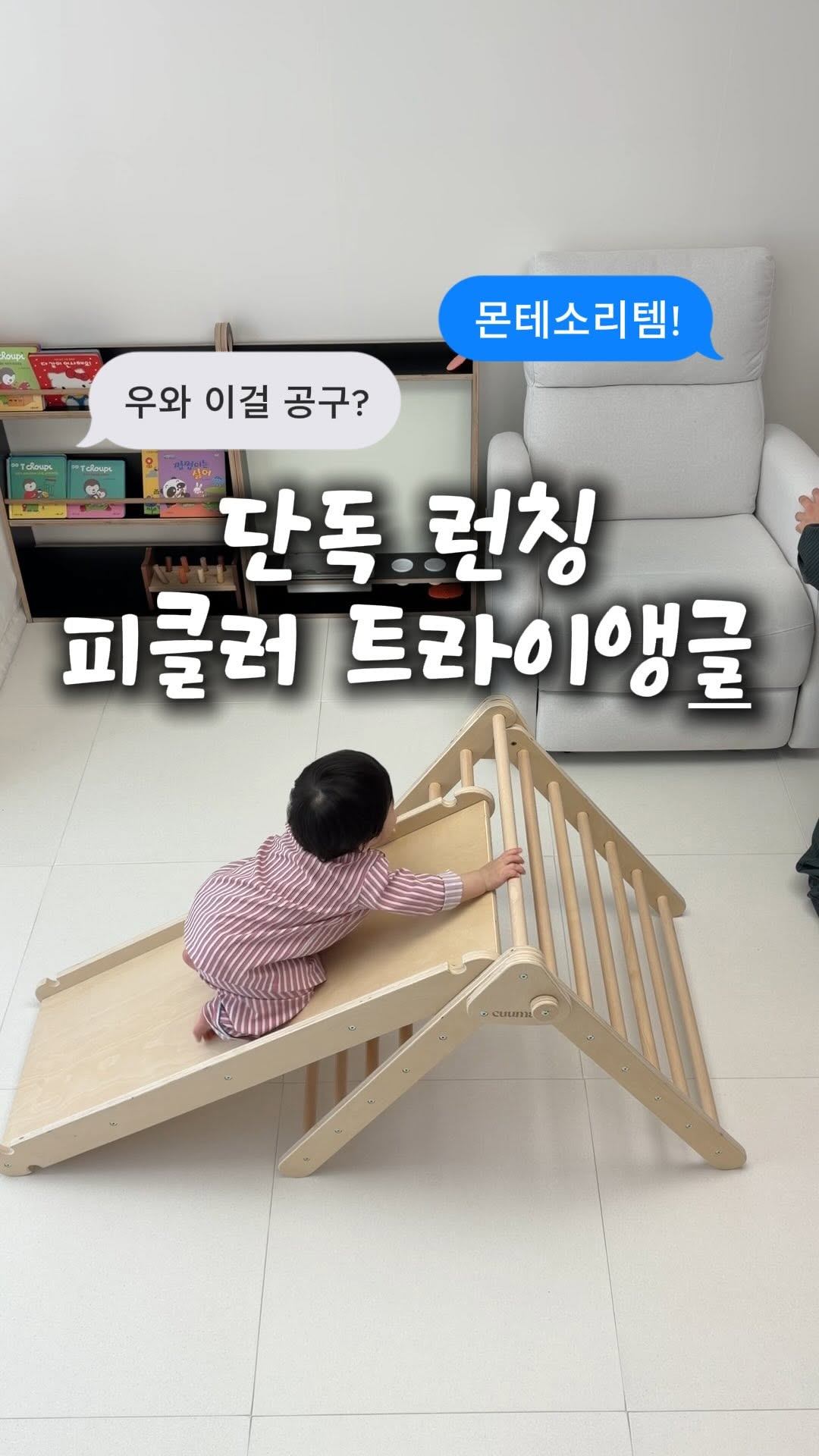 🎠 피클러 트라이앵글 켈리맘 단독 런칭 ✨ 📆 4/16(목) open ‼️ 한정수량 30개(꼭 필요하신 분들을 위해 어렵게 구해왔습니다) 📩 댓글 남겨주시면 오픈일에 알림 드립니다. 유럽 부모님들은 무조건 알고있는 #piklertriangle 👈 해시테그를 눌러서 해외맘들이 활용하는 모습을 보셔요🙌🔥 저희 우주는 대근육 발달이 빠른편이에요! 처음부터 잘 걸었느냐? 🙅♂️ 네발기기도 잘 못해서 머리를 바닥에 대고 끙끙 밀고 다니던 아이였답니다. 손과 발의 협응을 길러주기 위해 들인 대근육기구‼️ 이미 해외에서는 너~무나 유명한 발달육아템입니다. 한국에는 몬테소리에 관심이 많아지면서 최근에 급부상하고 있는 제품이에요. 생소한 부모님들을 위해 설명 드릴게요! 🪜피클러 트라이앵글이란? 헝가리의 소아과 의사 에미 피클러(Emmi Pikler)가 스스로 자신의 신체 능력을 시험하고 조절하는 법 배우는 몬테소리 철학과 흐름을 같이합니다📚 팔과 다리의 근력을 키우고 전신의 균형감각을 발달하며, 생후 6개월부터 권장하고 있는 발달 기구입니다! 👶🏻 권장 사용 시기 📍생후 6개월 ~ : 물건을 잡고 일어서기 시작할 때 지지대 역할 📍생후 12개월 즈음 - 슬라이드 보드(경사판)를 낮은 각도로 연결 - 한 칸씩 발을 딛고 올라가는 연습을 시작 - 배를 바닥으로 향하게 하여 미끄럼 📍 생후 18개월 이후 - 가파른 각도로 슬라이드를 조절 - 미끄럼과 소파를 연결해 구름다리를 만들어 건너기 💡 핵심은 지켜보기! ➡️ "부모는 거들 뿐!" 아이가 스스로 할 때까지 충분히 기다려 주는 것이 피클러 교육법의 핵심입니다. 😭 다칠까봐 불안해서 ‘안돼!’라고 말하고싶어요. ➡️ 아이의 자립심을 해치지 않으면서 부모의 불안도 줄이는 '피클러식 거리두기' 방법이 있어요. 아이가 끝까지 올라가지 않고 중간에서 내려온다면, 그건 아이가 스스로 판단한 '자신의 한계'입니다. "끝까지 올라가 봐!"라고 독려하거나 반대로 무서워한다고 바로 내려주는 것 모두 아이의 경험을 방해할 수 있어요. 저희 부부는 “하지마!” “안돼!” “아빠가 해줄께!” 라고 하기보다, 아이가 스스로 몸을 움직이며 자율성과 자기조절력을 깨우치는 과정을 믿고 지켜봐 주기로 했습니다 쓰다보니 말이 길어졌어요! 저희가 찐으로 사용하고 있는 이 제품은 사실은 해외 직구로 구매했어야 했던 제품이지만, 최근에 국내에서 튼튼하고 가격까지 합리적인 제품이 출시되어 매우 극소량이지만 공구로 소개하게 되었습니다🔥 아이의 건강한 발달을 위해 꼭 필요하신 분께는 매우 도움이 되는 공구일듯합니다! #피클러트라이앵글 #대근육발달 #집콕놀이터