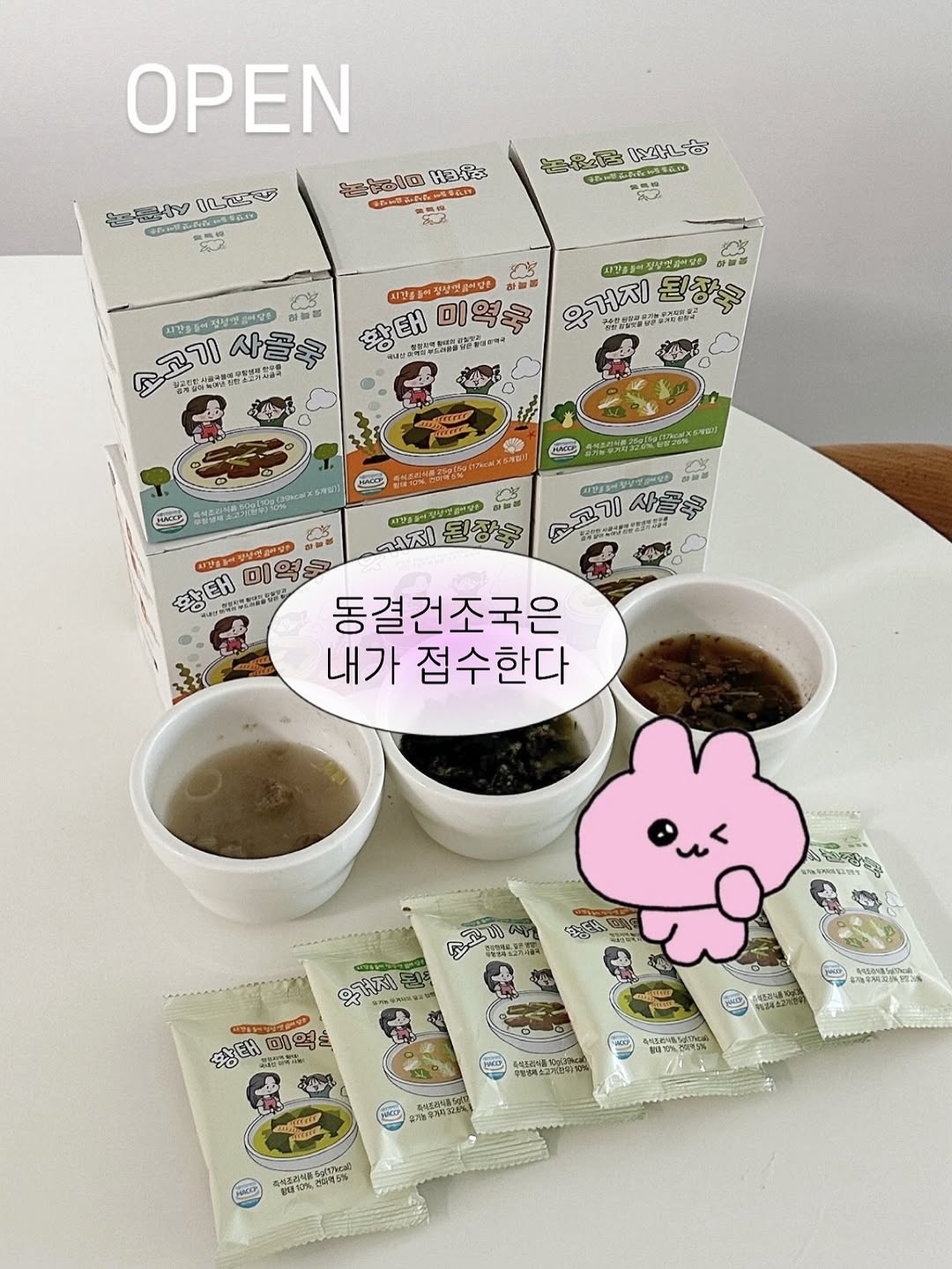 내일 아침 10시 OPEN #선착순이벤트 #구매완료 이벤트 [성분+맛 모두 잡은 동결건조국] 🎁구매완료 선물 두 가지! 💬 최저가 링크는 ‘링크’ 달아주시면 DM으로 보내드릴게요 ➀ 선착순 30분 랜덤국 1박스 추가 증정 ➁ 구매완료 + 구매자 핸드폰 번호 뒤 4자리 댓글 달아주시면 추첨을 통해 네이버페이 5천원권 보내드릴게요 ❗️3종 구매시 3,000원 할인혜택까지❗️ ⋯⋯⋯⋯⋯⋯⋯⋯⋯⋯⋯⋯⋯⋯⋯ 🍴바쁜 일상 속 빠르고 건강한 한 끼를 찾는 분들께 꼭 소개하고 싶은 동결건조국🙌🏻 아인이 먹거리에 진심인 엄마라 동결건조국 성분보고 안먹였었는데요 ✅ 첨가물없고 ✅ 유기농, 친환경 재료 사용 이라길래 일단 먹어보았어요! 무엇보다 아인이가 잘 먹어야하니까😊 👉🏻성분뿐 아니라 맛도 정말 신경 쓴 제품 개발기간만 1년! 자극적이지 않고 담백해서 입맛에 따라 간조절해주기 좋고 맛있어서 잘 먹더라고요👍🏻 📌바쁜 아침, 반찬하는거 깜빡한 저녁에도 유용하지만 외출 할 때, 여행다닐 때도 파는 국물은 짜거나 빨간 국물일때가 많은데 간편하게 건강한 국물 챙겨줄 수 있어요 ➰ 사실 하늘봄 동결건조국은 이미 유명해서 아시는 분 많으시죠? - 유기농 및 친환경 재료 사용 - 한살림, 생협에서 생산이력 확인가능 - 영양소 파괴가 적은 저온동결공법 👉🏻물 양을 조절해서 염도도 조절할 수 있고 👉🏻양이 적은 아이들은 반으로 쪼개서 두 번으로 나눠 먹어도 좋더라고요 😇 아이 먹거리만큼은 절대 타협 못하쥐 건강·간편함·맛까지 챙긴 하늘봄으로 고민 없이 준비하세요🫶🏻 ⋯⋯⋯⋯⋯⋯⋯⋯⋯⋯⋯⋯⋯⋯⋯ ✔️ 소고기 사골국 (소비기한: 27.6.12) 무항생제 한우를 곱게 갈아 녹여낸 깊고 진한 국물의 맛 ✔️ 황태 미역국 (소비기한: 27.8.4) 청정지역 황태와 국내산 미역을 사용한 깊고 단백한 맛 ✔️ 우거지 된장국 (소비기한: 27.7.1) 구수한 된장과 친환경 우거지를 사용한 깊고 진한 감칠맛 🗓️공구는 주말까지 진행해요