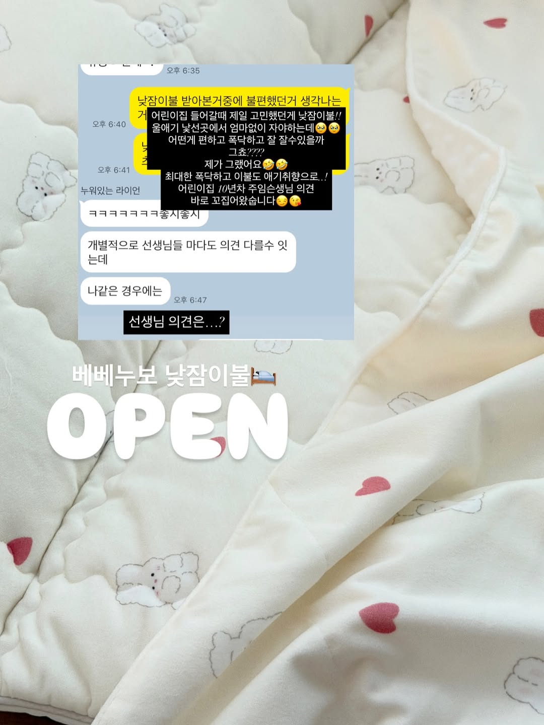어린이집 10년차 선생님이 말아주는 26년 어린이집 낮잠이불 원픽 베베누보‼️ #오픈 <링크> 남겨주시면 빠른링크 바로 보내드릴께요🫡 ㅡㅡㅡㅡ 듀툼한 낮잠이불은 바로 나.ᐟ.ᐟ.ᐟ.ᐟ 베베누보 낮잠이불 보여두려요😋 ✅#구매완료 댓글 남겨주시면 추첨통해 낮잠이불 전용 방수가방 선물로 보내드려요💚 우리아이 첫 낮잠이불은 어떤걸 기준으로 고르시나요? 어린이집만 6년째 보내고 있는 저의 기준은 폭신함.ᐟ 세탁 및 관리가 용이.ᐟ 가방에 쏙 넣을 수 있는지.ᐟ 4계절 사용가능한지.ᐟ 요런 기준들로 이불을 고민했는데 저의 원픽은 베베누보 낮잠이불 ! +++ 올해는 10년차 어린이집 슨생님의 의견까지 싹 말아왔으니 피드넘기면서 사진+설명 참고해주세요🩵 🧡26년형 신제품으로 보여드려요🧡 ✅24온스의 무려 7cm 두께 ! 폭신하게 꿀잠을 잘 수 있는 이유지요😌 ✅사계절용으로 여름에도 겨울에도 한가지이불로 쭉~~ 사용 할 수 있어요 ✅베개, 속패드 전부 분리되어 세탁도 편리하고 건조도 빨리되쥬ㅎㅎ ✅고정밴드로 정리도 보관도 간편해요👍🏻 ✅기본가방이 같이 오며 전용 방수가방을 별도로 구매가능해요🫶🏻 👉🏻기본제공되는 가방보다 전용방수가방이 더 튼튼하고 오래 사용하실 수 있어요 :) ✅통세탁 가능 ! 듀라론/인견 소재는 건조기 추천드리지 않아요😭 우리아기 낮잠이불이 고민된다면 지금 바로 프로필링크로 달려주세유🔥 🗓️1/14-17 ✅배송일 안내 1~4일(영업일)내로 출고예정 - 대부분 2시이전주문은 당일출고 예정이나 상품별/패턴별에 따라서 조금 지연될 수 있는점 안내드려요:) ㅡㅡㅡㅡㅡㅡㅡㅡㅡㅡㅡㅡㅡㅡㅡㅡㅡㅡㅡㅡㅡ ✅#구매완료 댓글 남겨주시면 추첨통해 낮잠이불 전용 방수가방 선물로 보내드려요💚