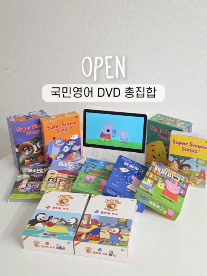 국민영어 DVD 총집합! ---------------------------------- 댓글에 "디비디" 남겨주시면 구매링크 DM드릴게요💕 ---------------------------------- 아이 엄마표영어해주며 음원노출 -> 영상노출은 필수죠..? 아이 첫 미디어 노출 전 정말 많이 알아봤어요. 저의 결론은, 1️⃣ 24개월 이후 시작 (저희아이는 30개월에 입문) 2️⃣ 책/음원 선노출 → 영상 후노출 3️⃣ 영어콘텐츠 '만' 시청 4️⃣ 연령에 맞고, 관심 가져하는 콘텐츠 보여주기 5️⃣ 하루 총 1시간 넘지 않기 영상은 DVD로 시작하기로 결정했어요. 유*브, 넥플*스 다 냅두고 제가 DVD로 결정한 이유 3가지 ✔️ 정해진 콘텐츠만 노출해줄 수 있다 ✔️ 유튜브 알고리즘의 노예❌️ ✔️ 휴대폰, TV, 태블릿으로 아이와 실랑이하지 않아도 된다 아이 30개월에 DVD영상노출 입문한 후 반응 좋았던 5가지 라인 소개드려요 :) 1️⃣ 슈퍼심플송 ✔️ 영어 첫 노출용 ✔️ 따라 부르기 최고 2️⃣ 페파피그 ✔️ 영국식 억양 발음 ✔️ 실생활 주제 가득 3️⃣ 까이유 ✔️ 뽀로로만큼 좋아함 ✔️ 명확한 딕션 강점 4️⃣ 블루이 ✔️ 유머러스한 가족 이야기 ✔️ 호주식 억양 발음 노출 5️⃣ 찰리와 미모 (추피) ✔️ 추피 지옥 맛봤다면 ✔️ 이건 무조건 추천 6️⃣ 바바파파 ✔️ 상상력 자극 최고 ✔️ 쉬운 표현 반복 많음 7️⃣ 맥스 앤 루비 ✔️ 생활밀착 표현 다수 ✔️ 현실 남매 케미 재밌음 📌공구일정: 4/16 - 4/21 📌 공구제품 및 가격 1️⃣ 슈퍼심플송 ▪️베스트+스폐셜+플러스+ABC(46종) 정가 320,000원 → 157,900원 (3만원 상당 ABC 파닉스 워크북 증정) ▪️베스트+스폐셜+플러스 (38종) 정가 260,000원 → 127,900원 ▪️베스트+스폐설 (24종)(★강추!) 정가 170,000원 → 88,900원 ▪️플러스 (14종) 정가 90,000원 → 44,900원 ▪️ABC파닉스&워드 (8종) 정가 60,000원 → 30,000원 2️⃣ 페파피그 ▪️시즌1+시즌2 정가 160,000원 → 88,900원 ▪️시즌1+시즌2+대본(★링구아맘강추!) 정가 190,000원 → 108,900원 ▪️시즌3 정가 80,000원 → 49,900원 3️⃣ 까이유 정가 77,000원 → 39,900원 4️⃣ 블루이 정가 150,000원 → 69,900원 5️⃣ 찰리와미모(추피) ▪️1+2집 정가 154,000원 → 88,900원 6️⃣ 바바파파 ▪️1+2집 정가 264,000원 → 79,000원 7️⃣ 맥스 앤 루비 ▪️1+2집 정가 154,000원 → 78,900원 8️⃣ 퍼피구조대 (신상⭐️) 정가 140,000원 → 59,000원 궁금하신 사항은 언제든 DM 주세요💕 구매링크는 프로필상단 링크에 있답니다 👉@lingua_mum #영어DVD #디비디 #영어영상 #엄마표영어