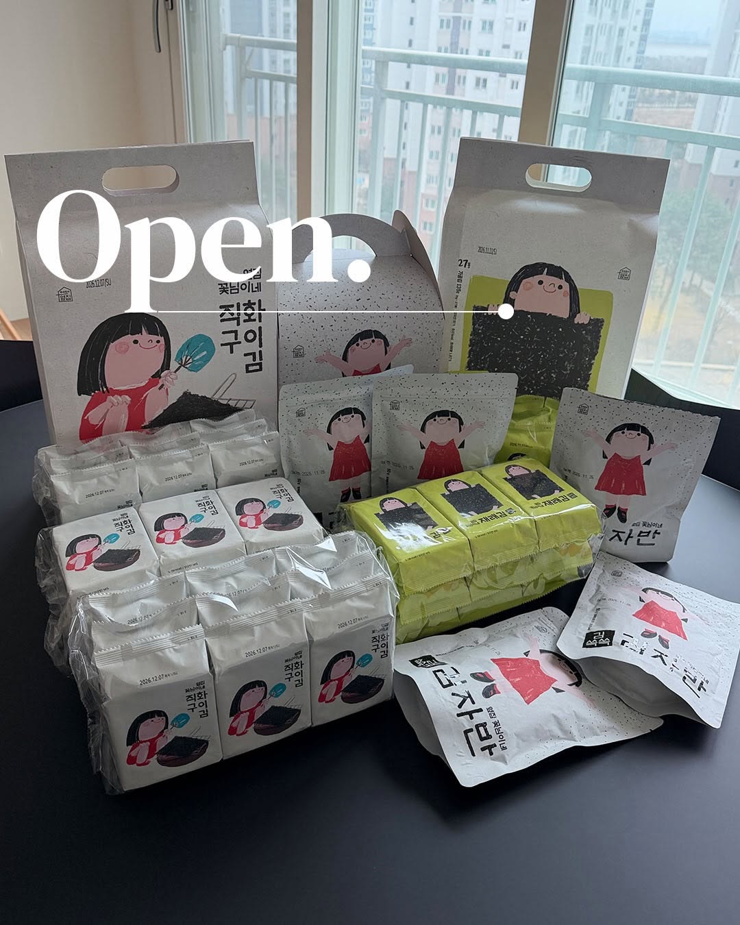 너무 맛있는김 꽃님이네 Open! 지금 프로필 링크로 오세요! 너무 예뻐서 아이들이 참 좋아하는김 ❤️구매 후 구매완료+폰 뒷번호자리 댓글 주세요! 🎁댓글 추첨 열분께 네이버포인트 5천원 추첨 열분께 김자반 1박스 드려요! HACCP은 기본, 철저한 위생관리 10개월 이상된 김은 무조건 폐기처리하는 맛있고 신선한 김 국내산 원초를 사용해 예 전통방식 그대로 직접 불에 구운 꽃님이김 수정 불판에 500도씨 이상의 온도로 특허받은 김구이 기계에 구워 나와요. 나트륨 함량 1%미만 일반 재래김 3-6%인 반면 꽃님이김은 나트륨 함량을 낮춰 아이들도 안심하고 먹을 수 있어요. 밥 없이 안주로도 너무 맛있구요! 김쏙쏙 김자반은 돌김 원초와 재래김을 블렌딩 아삭바삭하고 고소해서 진짜 처음 맛보고 놀랬어요. 기름에 절이지 않은 고온 건식 볶음 엄선한 남해안 원초, 참기름과 참깨의 고소한 균형! 1박스에 50g 5봉이 들어있고 별도 출고라 도시락김이랑 합배송이 안됩니다. 구매시 참고 해주세요! 와사비김은 맥주안주로 스트레스 확 풀리는 맛, 과자대신 요걸로 드시고 특히 회 드실 때 강추입니다! 코끝이 찡해요! 예쁘고 맛있는 꽃님이김 가격이 너무 좋으니까 좋은 분들께 선물 해보세요! #꽃님이네 #김추천 #김자반 #반찬스타그램
