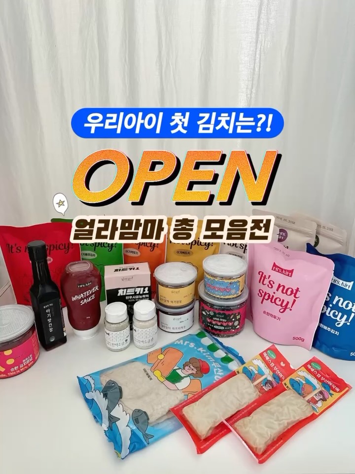 🍊#우리아이첫김치는얼라맘마 #총모음전 📌 링크 적어주시면 ✅바로구매링크 보내드려요 ⚡️ 한국 밥상에 빠질 수 없는 재료 바로바로 김치, 아이도 먹기 좋은 구성들로 준비했어요💖 (미리보기에요 오전 10시부터 구매링크 열려요) 🥬 얼라김치 + 소스·양념 시리즈 오픈‼️ ✔️ 사전예고 당첨자 안내(매주수/금발표) 👉 @seohuijeong_event 에서 확인해주세요 💟 오픈런 & 구매인증 이벤트 구매 후 댓글에 ✅구매완료 남겨주시면 추첨을 통해 아래 사은품 보내드릴게요 🎁 ✅ 아기된장 / 아기간장 / 아기소금 택1 (10명) —————————🩵————————— ✔️ 아이 김치 입문이 걱정되는 엄마 마음으로 자극을 줄이고 맛있게 준비한 제품, 얼라맘마 ✔️ 김치가 처음 낯설었던 아이에게 조심스럽게 한 번 올려봤던 그 김치, 그 이후로 꾸준히 찾게 되었던 그 김치, 바로 얼라맘마 김치였어요♥️ ‼️ 아이 김치 입문용으로도 많이 선택되는 제품 중에 하나가 바로 얼라맘마 ‼️ ✔️ 꾸준히 재구매하는 분들이 많고 ✔️ 온라인에서도 후기가 활발한 제품 ✔️ 아이 김치로 도전해보기 좋은 구성 🥬 고른 식단을 유지해 주는 밥 친구 ➡️ 얼⭐️라⭐️맘⭐️마 ✔️ 저희 집에서도 1년 넘게 다양하게 활용 중인 김치 라인업 (아기깍두기, 동치미 등은 가정별 섭취 반응에 따라 달라질 수 있어요) 💖 유아식 김치, 천천히 시작해보고 싶을 때 얼라맘마로 경험해보세요 💖 ✔️ 구성 및 가격 안내 ▫️ 아기김치류 5종 / 어린이배추김치 / 어린이깍두기 ➡️ 12,000원 ▫️ 순한배추김치 / 순한깍두기 (안 매운 고춧가루) ➡️ 11,000원 ▫️ 파프리카양념장 ➡️ 16,000원 ▫️ 아기간장 ➡️ 9,000원 ▫️ 유아식된장 ➡️ 12,000원 ▫️ 미세스킴 사각어묵 3봉 ➡️ 12,500원 ▫️ 미세스킴 어묵바 5개 ➡️12,000원 ▫️ 한백소금 (양파/브로콜리) ➡️9,000원 ▫️ 왓에버소스 / 치트키 / 연근밥가루 / 야채김자반 ➡️ 12,000원 ▫️ 코록차 / 작두콩차➡️ 10,000원 ▫️ 순한김치양념 ➡️ 12,000원 ⚠️ 어묵·김치양념 등은 냉동 보관 시 가정 내 보관 기간이 길어질 수 있습니다 (해동 후에는 가급적 빠른 섭취 권장) ✔️ 유통기한 안내 ➡️ 각 제품별 유통기한은 피드 내 표기 ✔️ CS / 배송 문의 ➡️ 얼라맘마 구매링크 내 네이버 톡톡 문의 ✔️ 구매는 프로필 링크 클릭 @ur_ra_mamma x @seohui_jeong #얼라맘마 얼라맘마김치 아이김치 김치입문 집밥브랜드
