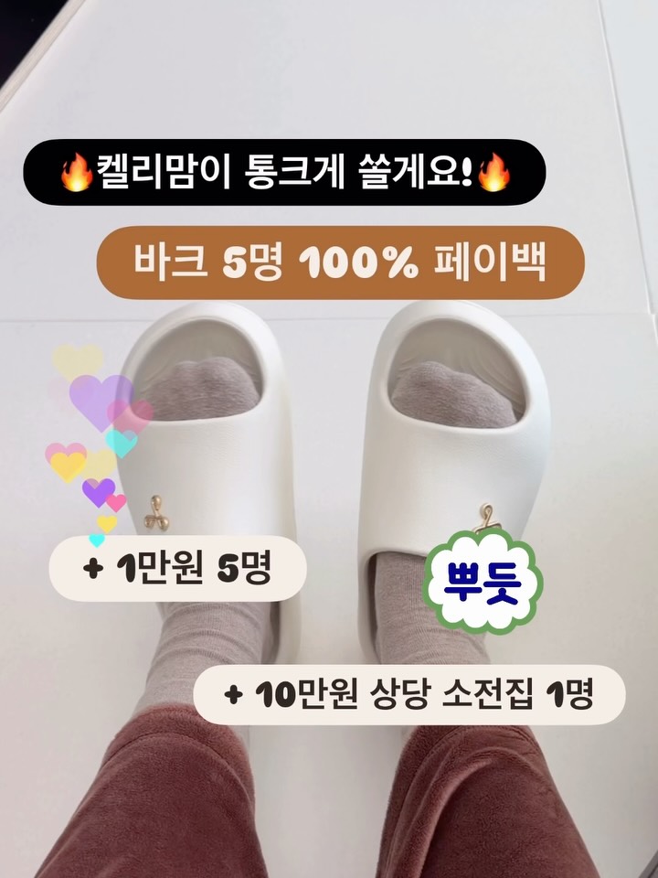 여러분.. 성원 진짜 감사드립니다🔥 제 채널에서 바크 처음 여는 공구였는데 이렇게 많은 분들이 찾아주시다니💕 역시, 입소문난 좋은 신발 다들 알아봐주시는 듯해요! 감사의 의미로 공구기간을 연장하고 구매하신 분들께 랜덤 추첨하여 빵빵한 구매인증 이벤트까지 준비했어요🔥 구매하신분들 오픈 피드에 댓글 꼭 남기세요! 🎁 참여방법 1) 오픈(open) 피드에 댓글 달기 2) 구매인증 + 폰뒷4자리 3) @kelley_mom_event 발표