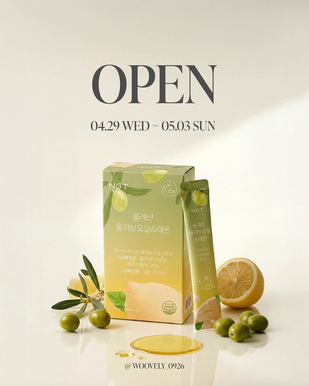 저속노화!매일아침 올레샷🫒🍋한포 챙겨드세요!!!!! 번거롭게 매번 수저나 컵에 만들어 드시나요?NGT 올레샷은 파우치라 그냥 뜯어서 쭈욱 짜서먹어주면 끝👍 바쁜아침에 번거롭게먹지말고 3초만 투자하세요! 올레샷으로 내 몸을 리셋하는겁니다!!! 다들 시도는 해보셧을텐데 집에잇는 올리브오일과 레몬즙 컵에따라서 마시는데 어우 못먹겟더라구요? 이게 비율도 중요하고 어떤 올리브오일이냐 이것도 정말 중요해요✔️ ‼️NGT 올레샷‼️ 👉저속노화 황금비율 올리브오일65:레몬즙35 👉올리브오일 산도 0.2% 👉명품산지 스페인산 바예호 생산 👉순수레몬착즙 100% 무엇보다 느끼하지않고 역하지않습니다!!! 제가 한달이상 꾸준히 올레샷을 공복아침에 먹어봣는데요 제일 많이 느끼는건 화장실을 무엇보다 너무 편안하게 가고,칙칙햇던 안색이 밝아졋구요! 또 푸석하던 얼굴에 광,생기가 돌기시작해요! 이건 드셔보시면 따악 모두 느끼실꺼에요👍👍 ✔️올레샷 구성✔️ •1박스 1만원대 •4박스 구매시 1박스 증정 •5박스 구매시 1박스 증정 입니다!! 곧 다가오는 가정의달! 부모님 선물이나 스승의날 선생님 선물로도 너무 좋은 올레샷이에요!!!!! #매일아침한포로 #저속노화루틴 #올레샷의기적 #시작해보세요