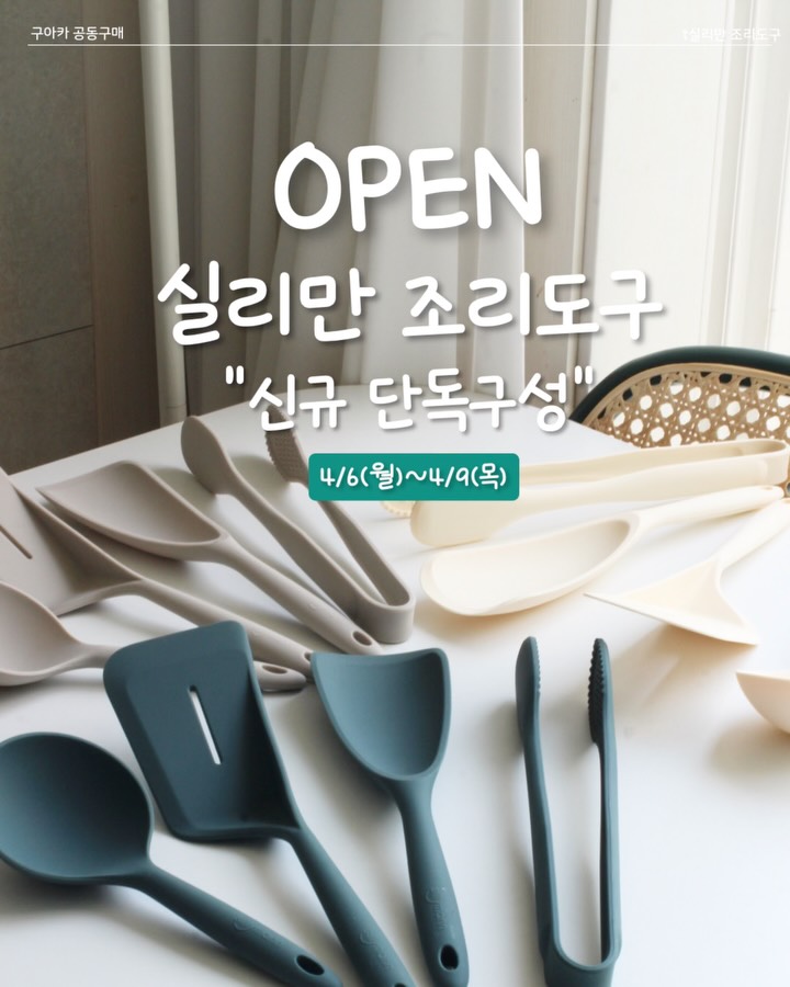 이제 집게도 실리콘으로! 사용해보세요👍🏻❤️ [실리만 신규제품 단독구성 최저가 공동구매 오픈🎉] 📌아무댓글 남겨주시면 최저가 링크 보내드려요! 🎁알림 추첨 이벤트 - 신규 멀티스푼 (3명) 참여방법: 팔로우 하고 알림 적어주세요. -스틸 요리용 핀셋 집게(20명) 참여방법: 구매 선착순 20분에게 드려요 -네이버페이 만원권(5명) 참여방법: 구매완료+전화번호 뒷자리 적으신분 추첨하여 드려요. 안녕하세요. 구아카입니다.😍 오늘은 특별히 구아카에서 신규 4종 세트도 만들어달라고 해서 이번에 처음으로 신규 4종과 기존+신규 섞인 6종까지 다같이 공동구매 진행하게 됐어요!! 기존에 사용하시던 분들은 신규 4종 추가로 꼭 써보시길 바래요. 서빙스푼도 엄청 편한데, 멀티스푼과 사이드 뒤집게가 기존보다 끝이 얇아져서 양념도 싹 긁혀지고 볶을 때도 편하고 뒤집을 때 편하고 무엇보다 손목에 힘도 안들어가서 좋더라고요. 그래서 요즘은 에바00도 안 쓰고 실리만 조리도구만 잘 쓰고 있어요 ㅎㅎ👍🏻 실리만은 플래티넘 실리콘으로 이유식 조리도구로도 이미 유명하죠👍🏻 또한 요리할 때 오랫동안 조리도구 넣어두면 뜨거워서 불편하잖아요. 이건 열전도율이 낮아서 손잡이가 뜨거워지지 않아 요리할 때 편해요.😘 실리만은 전 공정 100% 국내 생산으로 안전한 무독성 실리콘 소재에요. SGS, FDA, KCL, Koptri인증을 받은 원재료로 환경 호르몬 걱정 없이 안심하고 요리할 수 있어요. 또한 이염걱정 절대 안 해도 되고 (이염되면 햇빛에 두면 돼요) 식기세척기, 열탕소독이 가능해서 위생적으로 정말 좋은 조리도구에요! 오늘 10시 오픈하니 아무 댓글 남겨주시면 링크 보내드려요! . ✅실리만 조리도구 특징 ▫️이유식조리도구로 사랑받는 제품으로 그만큼 안전하다는 증거에요! ▫️국내생산 100% 믿을 수 있는 품질! ▫️ SGS, FDA, KCL, Koptri 인증받은 플래티넘 등급의 실리콘 사용! 환경호르몬 걱정 NO! 안심하고 사용하세요! ▫️-40 °C ~ 250 °C 까지 가능해 열탕소독, 식기세척기 사용할 수 있어서 위생적으로 좋아요! ▫️일체형 구조로 디자인이 깔끔하며 열전도율이 낮아 조리 시 손잡이가 뜨거워지지 않아 편리해요. ▫️이염걱정은 안해도 돼요! 빨간양념이나 카레를 사용 시 이염이 생겨도 햇빛에 두면 사라져요! ▫️정말 너무 이쁜 색상! 주방 인테리어에도 좋아요! . 🔸공동구매 날짜 : 4/6(월) - 4/9(목) 🔸구성 : 하모니 조리도구 6종 세트, 신규 제품 4종세트 ▫️기존+신규 6종세트 : 와이드 뒤집게, 사이드뒤집게, 국자, 알뜰 주걱, 요리 스푼, 서빙스푼✨ ▫️신규 4종세트 : 서빙스푼, 멀티스푼, 사이드 뒤집게, 집게✨ ▫️추가옵션: 튀김젓가락, 집게, 멀티스푼, 밥주걱, 거치대 ▫️칼라 3종 : 크림베이지, 코코아그레이, 오션그린 🔸기존보다 최대할인된 공동구매 가격! 최저가! #조리도구 #살림템 #살림꿀템 #집게 #살림은장비빨