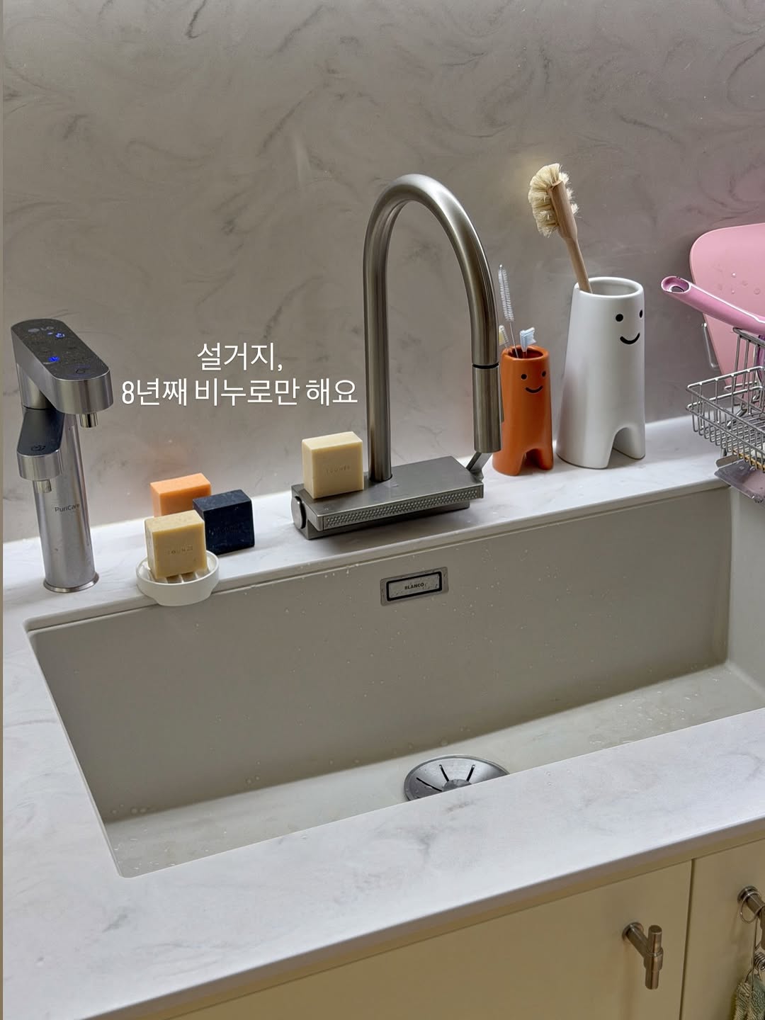 설거지, 저는 8년째 비누로만 하고 있어요🫧 액체세제 쓸 때 잔여세제가 신경 쓰여서 비누로 바꿨는데 거품도 잘 나고 기름기도 잘 닦이고 쓰레기도 안 나와서 자연스럽게 계속 쓰게 되더라구요 맨손으로 해도 부담 없고 물에 닿으면 금방 씻겨 내려가서 잔여세제 걱정 없는 것도 좋아요👍🏼 과일이나 채소 씻을 때도 따로 세제 쓰지 않아도 돼서 편하구요 👉🏼 톤28 공구 진행중입니다 프로필 링크에서 확인해보세요🤍