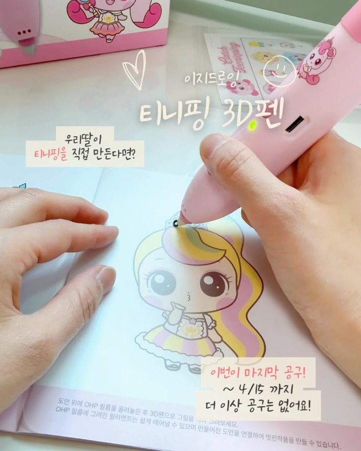 이지드로잉 프린세스 캐치티니핑 3D펜 OPEN 4/15에 마감하게요. 더 이상 요건 공구가 없어요. 어린이날 선물 고민하신다면 서두르세요 🏃🏃♀️🏃♂️ 그냥 장난감? 아니에요…🥹 “아이 집중력 제대로 잡아주는 템”이에요 ✍️✨ 요즘 우리 아이들 유튜브, 영상에 익숙해져서 가만히 앉아서 뭔가 하는 시간이 부족하잖아요 근데 이거… 한 번 잡으면 진짜 조용해져요😳 머릿속 상상이 그대로 ‘작품’이 되는 순간 내가 만든 거라 더 애착 생기고 자연스럽게 집중력과 표현력 느는게 보이더라구요 무선이라 미리 충전함 밖에서도 집중집중 창착활동 즐겨요 🥰 게다가 엄마 입장에서 중요한 거 당연히 아이들 안전이죠 ^^👇 “만져도 뜨겁지 않아요” ✔ 저온 30~40도 → 화상 걱정 거의 없음 ✔ PCL 친환경 필라멘트 사용 ✔ KC 어린이 안전 인증 완료 그리고 솔직히 배터리 중요한데요… ✔ 1400mAh 대용량 ✔ 약 2시간 사용 가능 (타사 대비 오래 쓰는 편 ✔) 필라멘트도 그냥 주는 게 아니라 ✔ 총 200m 이상 넉넉한 구성 ✔ 티니핑 색감 맞춰서 세팅 👉 만들다가 “색 없어서 멈춤” 이런 거 없어요 아이들이 좋아하는 티니핑이라 도안북 따라 만들어 보고, 스티커로 꾸미기까지 그냥 놀이가 아닌 ‘작품놀이’로 바뀌어요 🎨 이미 리뷰 수천건 검증된 제품이라 엄마 입장에서는 “실패 없는 선물” 이 느낌이에요 ✔ 다가오는 어린이날🎁 급하게 사면 항상 후회하잖아요… 이건 미리 준비해두면 진짜 잘 썼다 싶은 선물이에요 🫶 🏷 옵션: 1.이지드로잉 티니핑3D펜 1400MAH(2Mx7ea&5Mx20ea) +티니핑 스티커+티니핑 도안북, 2.티니핑용 리필 필라멘트(5m*20ea) 🗓️ 진행기간 : ~ 4/15 🚛 배송기간 : 평일기준 2~3일이내 👇 우리아이는 어떤 티니핑 좋아하나요? 댓글에 남겨주시면 초특가링크 보내드릴게요💬