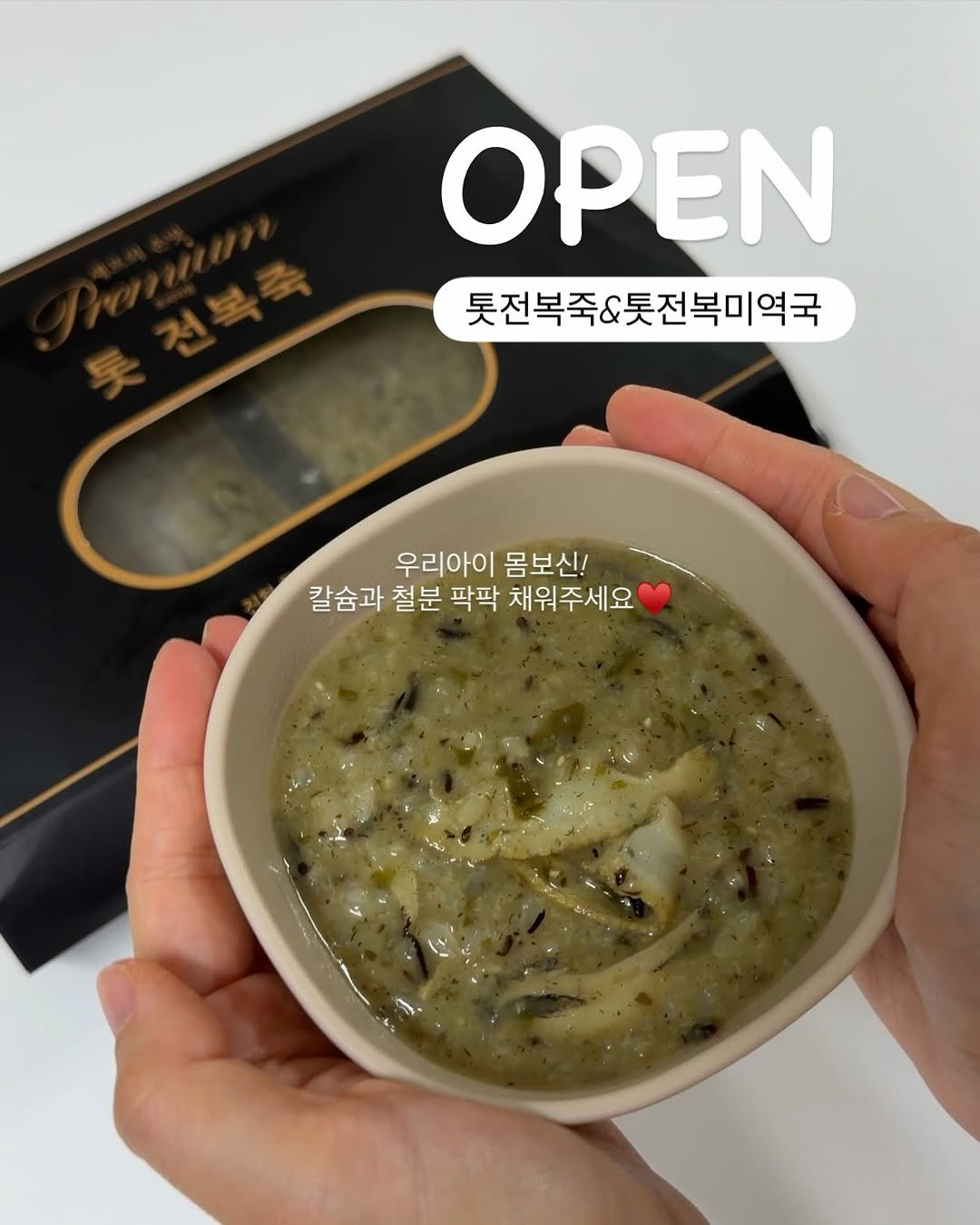 #공구오픈 [링크]남겨주기면 최저가링크 보내드려요! 🎁구매완료이벤트🎁 구매 후 댓글에 [구매완료+기대평&후기]를 남겨주시면 추첨을 통해 3분께 [순살 꽃게장 250g [간장or고추장] 랜덤 1개]를 보내드릴게요! (또후니맘 태그 후 스토리, 피드 인증시 당첨확률 UPUP) ——————————————— 우유도 밥도 안먹겠다는 우리아이들…! 칼슘 어떻게 채워주고 계세요? 저도 이게 제일 고민이었거든요😭 그래서 찾은 게 그냥 전복죽 말고 몸에 좋은 톳까지 들어간 [톳전복죽] 시중에 판매되는 전복죽 종류는 정말 많지만 톳 들어간 건 진짜 잘 없더라구요…! 우리몸에 톳이 좋은건 워낙 잘 알고 계실텐데 톳이 우유보다 [칼슘] 훨씬 많은거 아세요? 그래서 요즘에 아침 한끼 이걸로 많이 해결해요♥️ 몸보신 시켜줘야겠다 싶을때에도 무조건 이걸로! ——————————————— 👦🏻👧🏻 또후니와 딸기의 찐후기 지금까지 3~4군데 전복죽을 제안 받아서 먹어봤지만 저희 아이들이 다 안 먹거나 짜서 실패했어요..! 근데 이건 대박사건! 들고 마시더라구요😳 음식에 대한 호불호가 확실한 아이들인데 이건 끝까지 먹는 거 보고 이거다 싶었어요! 그래서 자신있게 추천드려요🔥 요즘 환절기여서 감기 그리고 미세먼지 때문에 아이들 컨디션 떨어질 때 많죠..! 이럴때 이런 죽 냉동실에 쟁여두면 정말 든든해요✨ ——————————————— ✅ 물 넣고 10분이면 완성 ✅ 쌀60% + 전복25% + 톳12% *쌀과 전복은 국내산 유기농, 톳은 국내산 ✅ 칼슘 + 철분까지 한 번에 ✅ 짜지 않아서 아이도 어른도 OK 귀찮게 전복 손질 안 해도 되고 그냥 후루룩 끓이면 끝이라 찐편해요! 온가족 다함께 톳전복죽으로 몸보신하세요♥️ ——————————————— 📍공구기간 : 4월 2일(목)-5일(일) / 4일간 📍구매방법 : 프로필(@ddohuni_mom)링크 통해 구입 가능 📍배송안내 : 낮12시 주문건까지 당일배송 #톳전복죽 #아기죽 #아기죽공구
