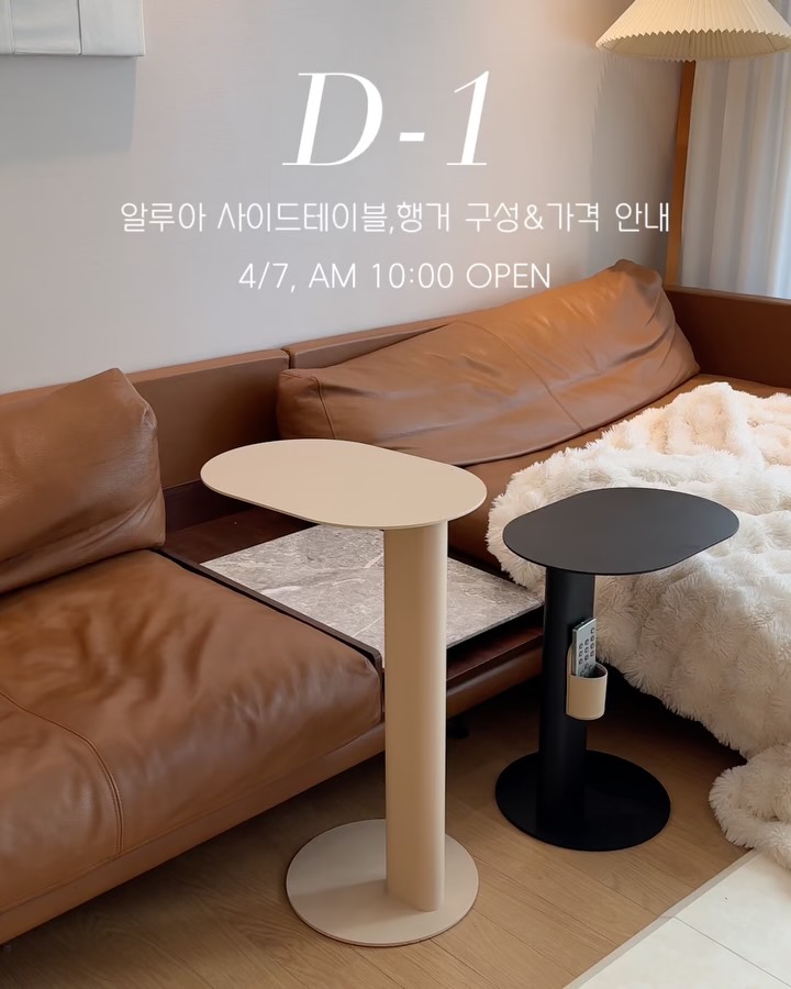 #내일오픈 알루아공구 이벤트와 함께 가격,구성 안내드려요 🫶 🎁🎁선착순 이벤트 30분+10분🎁🎁 오발테이블 구매자 선착순 30분께 티코스터를 보내드리고, 행거 구매자 선착순 10분께는 가죽걸이를 추가로 1개 더 보내드려요 오픈시간은 오전 10시! . . 제가 가구에 정말 진심인건 모두 아시죠? 여러가구 구매하며 알게 된 사실인데 철제로 된 제품은 일단 가격대가 진짜 높더라구요.. 철판 원자재 및 가공비 자체가 높아서 보통 이렇게 무게감있는 제품은 찾기 정~말 어려움!! 나사 이음 없이 용접으로 이은 일체형 선반이라 과연 마감도 깔끔할까? 걱정되었는데 .. 이게 웬일? 와👏👏👏 마감도 ,도장도 진짜 깔끔!! 30년 이상 금속 가공으로 쌓은 기술력을 배경으로 100%국내에서 디자인, 제작 한 상품이에요🛠️ ✔️퀄리티 ✔️품질 모두 월등히 높은제품 ⠀ ✅주요질문 Q: 자석매트, 리모컨거치대 단품만 구매 가능한가요? A : 아쉽게도 테이블과 함께 구매시에만 할인이 적용되며 , 공구 단품 구성은 없습니다ㅜㅜ 테이블과 한번에 구매하시길 강력 추천드려요! *별도 구매를 원할시 알루아 스토어에서 정가로 구매 가능합니다 (나중에 구매하고 싶으실 거에요 ㅜㅜ) Q: 인기있는 타입 추천 해주세요 A: C타입이 가장 높습니다. 높이가 적당히높아 간단한 식사나 문서작업이 가능해서 인기가 많습니다. *낮은 침대/쇼파 : B타입 추천! *일반 침대/쇼파: C타입 추천! Q: 인기있는 색상 추천 해주세요 A : 누크화이트/ 핑크브라운/ 버터옐로우/ 멘하탄블랙 순으로 인기가 많습니다 어디든 무난한 색상으로는 누크화이트,핑크브라운 추천드려요! Q: 가격이 어떻게 되나요? A : B타입 (낮은형) 175,000 C타입(높은형) 195,000 입니다. 처음엔 생각보다 비싼데? 생각 하실 수 있지만 제품 받아보시면 느끼실거에요! 퀄리티,마감 어느 프리미엄가구 브랜드 못지않게 좋고 정말 오래 쓸 디자인이라 후회 없으실 거에요. Q:배송은 얼마나 걸리나요? A: 무게와 부피가 있는 제품이다보니, 하루에 출고가능한 물량 이 정해져 있어 평균 3~4일 소요됩니다. 주문이 몰린다면 최대 1~2주 까지도 소요 될 수 있어 일정을 여유있게 잡아주세요. 주문순으로 출고되오니, 빠르게 받고 싶으실 경우 빠른 주문 부탁드립니다🙂↕️ ✅구성 -테이블 B타입-타원 낮은형 (상판-300x450,높이-493mm,무게 9.6kg) -테이블 C타입-타원 일반형(추천) (상판-300x450,높이-653mm,무게 10.3kg) -행거 (바닥판-300,가로길이-430 높이-1250mm,무게 6.5kg) *테이블 옵션 천연가죽 자석 테이블매트 /가죽 리모컨케이스 / 컵받침 ✅색상 *테이블-누크화이트,사하라 핑크브라운,버터옐로우,라군블루, 파리그린, 라바그레이, 멘하탄블랙 *행거 -누크화이트,사하라 핑크브라운,멘하탄블랙 ✔️써니홈 보유 타입 B타입 테이블- 멘하탄블랙 C타입 테이블- 사하라 핑크브라운 행거-사하라 핑크브라운 ⠀ ⠀ ⠀ 🔻🔻🔻구매 전 유의사항🔻🔻🔻 알루아 할인전은 알루아와 써니홈이 협업 진행하는 ”공개 공동구매“ 입니다. 할인기간 동안 알루아 스마트 스토어에서도 동일한 공동구매 링크가 노출됩니다. 이에 최저가 착각이 없으시길 바랄게요😉 [알루아 x써니홈 협업 최저가 가격] 테이블 B타입 (낮은형) 175,000 테이블 C타입(높은형) 195,000 리네아 행거 211,000 . . . . 📌일정 4/7(화) 오전 10시 최저가오픈 📌이전 릴스에서 본품증정 이벤트 진행중 입니다! 내일 오픈피드에서 발표할게요🫶