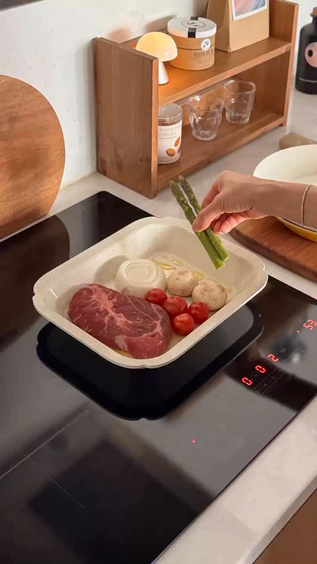 요리하고 바로 먹으니까 설거지가 줄어요💙 요즘 진짜 자주 쓰는 바첸 쿠커블웨어!! 예전엔 요리하고 나면 접시에 또 옮겨 담느라 설거지 한 번 더... 근데 이건 프라이팬 자체가 접시 느낌이라 그대로 식탁에 올려도 너무 자연스러워요 요리 끝나면 바로 먹고 그릇 하나 덜 쓰니까 훨씬 편해요💦 게다가 가벼워서 꺼내 쓰는 것도 부담 없고 손목도 덜 힘들어요 논스틱도 좋아서 계란, 볶음요리도 깔끔하게 떨어지고 설거지도 금방 끝 인덕션, 가스, 하이라이트 다 되고 오븐, 식세기까지 가능해서 그때그때 상황에 맞게 쓰기 좋아요 작은 차이인데 매일 쓰다 보니까 진짜 편해요😘 🕒공구기간 4월23일-재고 소진시 마감 💟마리에뜰 프로필 링크에서 확인해보세요