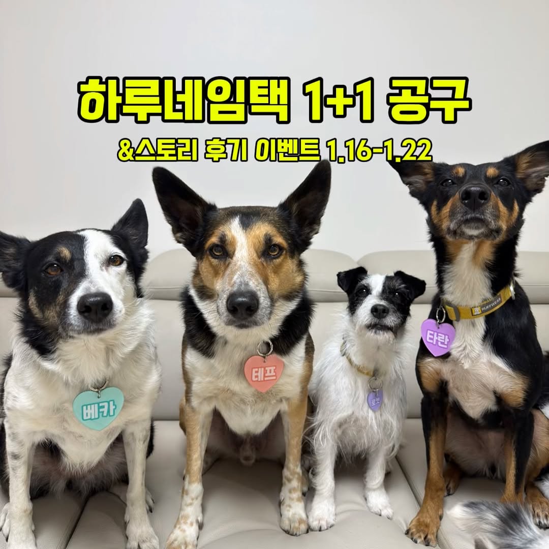 📢 하루네임택 1+1 공구 + 스토리이벤트 안내 오랜만에 하루네임택 공구 가져왔어요! 공구 때마다 제일 인기 많았던 하트 디자인으로 진행합니다 💛 진짜 누가해도 귀염뽀짝해요. 이번 공구는 처음으로 진행하는 1+1 이벤트예요. 👉 1개 구매 시 1개 추가 증정! 목줄에도, 하네스에도, 구명조끼에도 달고 저는 켄넬에도 걸어두고 필요할 때마다 바꿔서 쓰고 있어요. 정말 오래전부터 쓰고 있는 네임택이라 튼튼함은 이미 검증 완료된 제품이에요. 솔직히 말하면 1+1 공구는 진짜 왠만해서 오는 기회가 아니에요. 이번 기회에 여유 있게 쟁여두세요! 목줄마다 깔별로 맞춰놔도 엄청 귀엽답니다. 📌 공구 안내 공구기간 : 1.16 (금) ~ 1.22(수) 7일간 금액 : 13,000원 구성 : 하루네임택 하트 ♥ 1+1 ※ 1+1 증정 제품은 구매한 색상·사이즈와 동일하게 발송됩니다. ※ 색상 변경 / 내용 변경 불가 (ex. 노랑 1 + 파랑 1 구매 → 노랑 2, 파랑 2 발송) 🎁 스토리 & 후기 이벤트 안내 사장님 인스타 계정이 해킹되는 바람에 기존 후기 사진들이 전부 사라졌다고 해요🥲 그래서! 이벤트 두가지로 준비했어요. ✔ 첫번째 스토리 이벤트! 참여 방법 1️⃣ @harunametag 하루네임택 팔로우 2️⃣ @0909iii09 공구요정야미 팔로우 3️⃣ 공구 피드 스토리에 공유 4️⃣ 참여완료 댓글 달기 ✔ 두번째 후기 이벤트! 1️⃣ 하루네임택 구매 2️⃣ 인스타 스토리 or 피드에 착용사진 업로드 3️⃣ @harunametag 하루네임택 태그 4️⃣ @0909iii09 공구요정야미 태그 👉 태그하면 자동으로 이벤트 참여 완료! 각 이벤트당 5분씩 뽑을께요❤️ 많은 참여 부탁드려요 후기 많이 올려주시면 사장님도, 저도 진짜 힘 납니다 💪 #후기이벤트 #하나사면하나더 #인식표이건사야해 #하루네임택