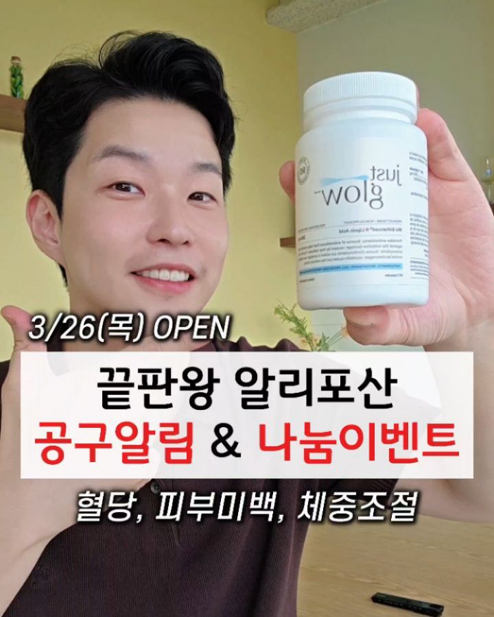 🔻알리포산 공구알림 안내사항🔻 혈당과 피부를 한번에 잡는 "끝판왕 알리포산 = R-알파리포산" 🎉공동구매 사전 알림과 나눔 이벤트 진행합니다🎉 ✅️ 저장도 한번 꾹 부탁드려요 📍이런 분들께 추천 드립니다 ▪️혈당으로 인한 신경 손상을 막고 싶으신 분들 ▪️손발 저림, 찌릿함이 있으신 분들 ▪️혈당 관리가 필요하신 분들 ▪️효과적인 감량에 도움이 필요하신 분들 ▪️피부를 환하게 하고 싶으신 분들(글루타치온 생성촉진) ▪️베르베린 효과를 극대화 하실 분들(시너지) 📍이런 제품입니다 ▪️알파리포산의 활성형만 모아서 흡수율을 높인 ▪️BioEnhanced R-리포산 📍섭취 방법 ▪️아침공복 섭취 ▪️위장 불편시 식후도 가능 📍공구 구성 [1통 = 90캡슐] ✔️ 255mg 2통 : 정가 165,600 >> 공구가 : 112,800 (32%) ✔️ 255mg 4통 : 정가 275,920 >> 공구가 : 208,800 (37%) 📍공구알림 남겨주시면 ▪️추첨해서 본품 5명 선물 보내드립니다 ▪️이 제품으로 기대되는 점 써주시면 더 좋습니다 (공정성을 위해 회사에서 뽑습니다) 📍3/26(목) ~ 4/2(목) ▪️공동구매 예정입니다. 항상 함께해 주셔서 감사드립니다 궁금하신 내용은 언제든 남겨 주세요🫡 @yak_secret #알리포산 #알파리포산 ##저스트글로우알리포산 #알리포산공구 #알리포산나눔 Q) 알리포산 어떤 목적으로 섭취 에정이신가요?😮