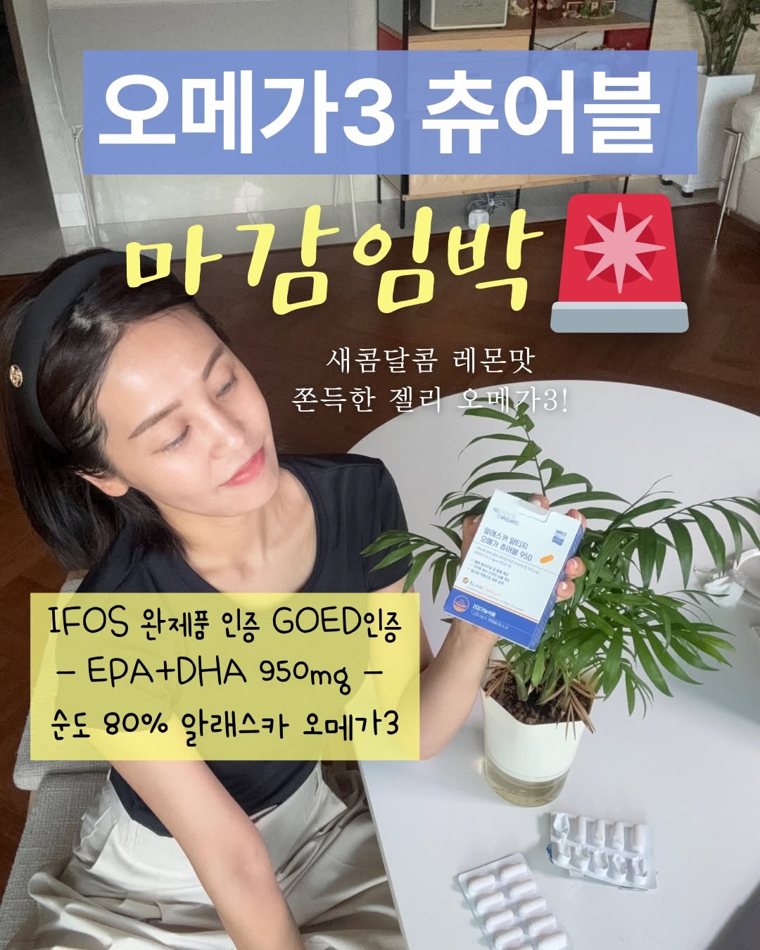 ‼️츄어블오메가 반값공구 마감 알려드려요 내일 마감이에요 맛이 없을까봐, 안 맞을까봐 고민만 하셨다면 이번 새콤달콤 레몬맛 맛있는 츄어블 타입 오메가3를 경험해보세요😀 ✔️온 가족이 함께 씹어서 즐기는 젤리형 오메가3 ✔️글로벌 기업 Wiley AlaskOmega 프리미엄 rTG 오메가 원료 ✔️높은 체내 흡수율의 rTG 오메가3 ✔️DHA+ EPA의 합 950mg 함유 ✔️안전성 높이고 산패 줄인 차광 PVDC 포장 ✔️원료부터 완제품까지 엄격한 품질 관리 완료 소비기한은 2027. 9. 2 ❤️ 🫙하루 한번 식사하시고 딱 한알 드셔보세요! 평소 많이 드시는 분들은 3알까지 가능입니다 :) 냉장고 보관 필요 없고 가방에 넣어두고 어디 다닐 때나 여행 때도 통째로 가지고 나가시면 되어요! 평소에 부담되어서 못 드셨던 분들! 이번 공구에서 사드셔도 좋아요 ⭐️⭐️최대 할인 기준 1개월 1만원대⭐️⭐️ ✅ 캡슐 섭취 어려운 아이들이나 성인 ✅ 남녀노소 누구나 가능! (씹을 수 있다면!) ✅ 비린 맛 없이 맛있는 오메가3 찾으시는 분 ✅ 육류, 인스턴트 위주 식습관 가지신 분 ✅ 장시간 모니터, 스마트폰 사용으로 눈이 건조하신 분 ✅ 기억력 개선을 원하는 학생, 청소년, 어른 ✅ 평소 식생활이 건강하지 않은 분 뉴탠다드 오메가3 츄어블은 비린내가 나는 저퀄리티의 산패된 오메가3가 아니에요 제대로 된 오메가3 드시면 정말 느껴지는 반응이 다르거든요 👉🏻하루 1알씩! 👉🏻공복보다는 식후가 흡수에 더 좋아요! 📢츄어블 오메가3 이벤트 당첨자 공지드려요 3일 이내 @yakstagram_official 로 성함 연락처 주소 디엠 보내주세요❤️ @m._.sssi @seungmiya @smile_yulsoyul @ws0982 @suyoung3282 @love_is_all_106 @naeldaelmamgrace @geo7887 @happyjjuny_bb @lovely_jiyoung_s2 @juliaslifestory12 @khjung43 @lovely_02.25 @mint1209_ @soyean_yoo @eternal___024 @hi_kiong @gyu___w5 @rinrin.world @sunjoo_noh @maru_calli @kiwonlee1202 @sssssoriii @jjiya.yo @popory3 @jinsuk.won @iam_yoon.al @jangeunmi_83 @ihyeona52 @jaymm0512 축하드립니다!!👍🏻👍🏻👍🏻😀😀😀