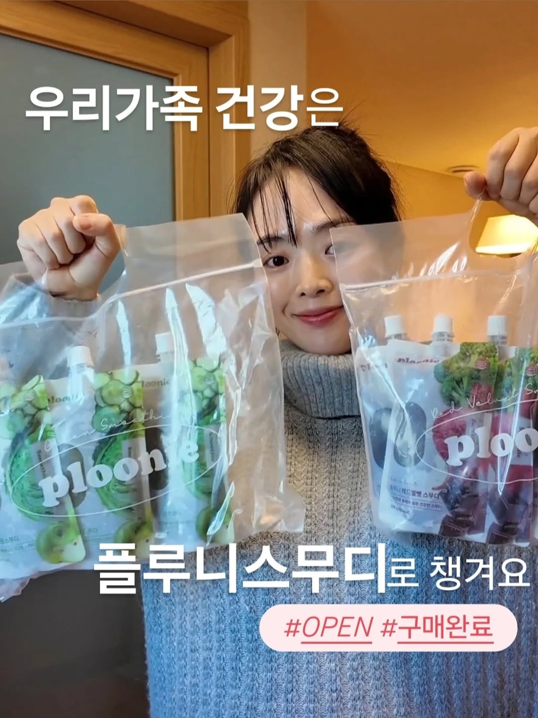 #구매완료댓글이벤트 🩷우리 가족 건강 지킴이! 플루니 스무디 최대 39% 할인 공구 OPEN✨ 🗓️ 일정 4/2(목) 오전 10시~4/5(일) 🎁 이벤트 1️⃣ 구매자 선착순 100명 그린 스무디 낱개 2개 증정 2️⃣ 구매완료 댓글 랜덤추첨 10명 백화점상품권 10만원 증정 🚚 배송 바로배송 - 전 옵션 무료배송 정기배송 - 총 4회 배송비 9,000원 부과 (1회는 무료로 보내드려요!) *주문 순서대로 순차 발송될 예정입니다. *주문 폭주 시 출고가 영업일 기준 5일 가량 지연될 수 있습니다. 📌 교환/반품 냉동식품 특성상 단순변심 교환/반품 불가 📌 구성 그린/퍼플/레드벨벳/핑크 4종✨ 플루니 스무디 1SET=5개입 *2세트부터 최대 12세트까지 준비되어 있습니다❤ 드셔보시면 아실 거예요! 내 몸이 이렇게 건강하게 변하는데 소중한 사람들 얼굴이 당연히 떠오르거든요. 작년 한 해 스무디가 100만개 이상 배송될 수 있었던 이유는 베리들이 본인 뿐 아니라 가족들에게도 선물했기 때문이라고 생각해요❤️ 저도 매번 가족들에게 택배로 보내드리는데요, 설탕·보존료·합성 첨가물 없이 검증된 재료 조합으로 HACCP공장에서 깨끗하게 만들어 급속냉동되어진 제품이라 제가 집에서 만든 것보다 더 ㅎㅎㅎ 안심하고 보내드릴 수 있어요 👶 아이들 채소 안 먹는 아이들, 억지로 먹이지 말고 스무디 한잔으로 채워주세요. 🟣 퍼플은 블루베리 기반이라 아이들이 채소와 친해질 수 있게 도와주는 최애템이랍니다 🩷 핑크는 당근·양배추·토마토 조합으로 반찬으로 주면 도망가는 채소들이지만 달콤상콤한 맛으로 인기 많을거에요 ㅎㅎ 그야말로 영양 덩어리! 👵 부모님 나이가 들수록 떨어지는 장 운동과 활력 생채소는 섬유질이 거칠어서 위장에 부담이 될 수 있어요! 그래서 적절하게 익힌 채소를 갈아 소화 접근성을 높인 형태가 더 합리적이라고 봅니다 🟢 그린은 케일·샐러리 식이섬유로 장 연동을 부드럽게 자극하고, 칼륨은 나트륨 균형 관리에 도움 줘요 🔴 레드는 비트+십자화과채소 활력 떨어지고 호르몬 밸런스로 고민인 부모님 연령에 딱 알맞은 스무디 👫 우리 부부 하루 종일 앉아 있고, 스트레스 받고, 스트레스는 야식으로 풀고.. 🟢 그린으로 전체적인 디톡스 완성 🔴 레드는 임신 준비 부부에게도 최고 임신 준비중이시라면 꼭 경험해보세요! 결국 저는 스무디를 “가족 공용 건강 루틴”이라고 생각해요! 아이 영양제 따로, 부모님 즙 따로, 다이어트템 따로 이렇게 나누는 대신 냉장고 한 칸에 스무디 4색 채워두면 우리가족 건강 지키기 끝❤️❤️ 좋은 건 나눠야 하잖아요 :) 온 가족이 같은 방향으로 건강해지는 루틴 시작해보세요 🤍