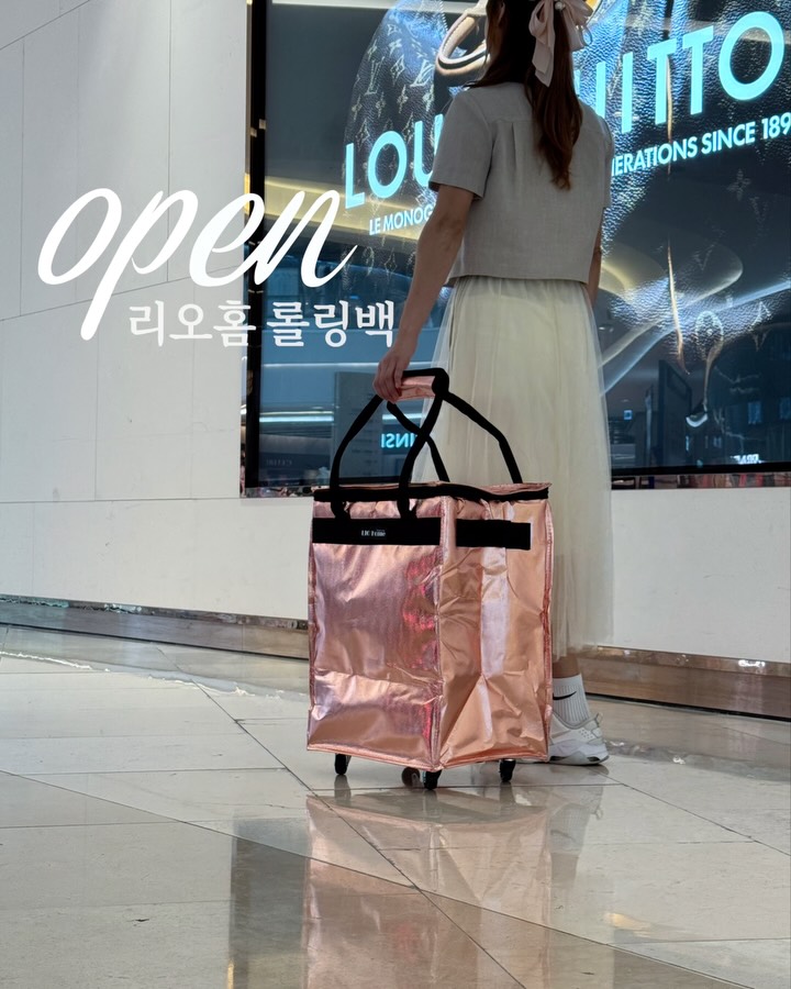 무거운 비닐봉지를 대신할 리오홈 롤링백입니다. 50리터 대용량으로 마트 카트 대신 사용 가능하며, 360도 굴러가는 바퀴로 편리하게 이동할 수 있습니다.