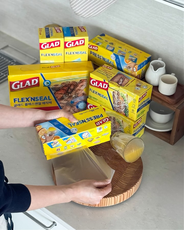 🧡글래드 매직랩과 매직백 공구예고 주방에서 자주 쓰는 랩인데.. 쓸 때마다 잘 안 뜯기고 엉키면 은근 스트레스죠 😥 그래서 글래드 매직랩 & 매직백 준비했어요🤍 붙이는 랩의 원조답게 밀착력은 물론이고 사용감이 정말 편해요 특히 이번 슬라이드랩은 당겨 자르는 불편함 없이 밀어서 컷팅하는 방식이라 훨씬 간편하고 안전하게 사용할 수 있어요 33cm 넉넉한 사이즈라 큰 접시나 믹싱볼, 수박처럼 부피 있는 재료까지 한 번에 넓게 덮기 좋아서 활용도가 높아요 매직백도 진짜 만족도 높은 제품이에요 신축성이 좋아서 내용물 크기에 맞게 늘어나고 한 장만으로도 충분히 밀봉돼서 식재료 보관할 때 훨씬 깔끔해요 국물 있는 반찬이나 육류 보관은 물론, 냉동실 정리할 때도 너무 유용하고 여행 갈 때 젖은 옷이나 부피 있는 소지품 담기에도 딱이에요 한 번 써보면 왜 다들 찾는지 아실 제품! 곧 만나보세요🧡 📌공구일정 📢 04월16일-재고 소진시 마감 📍빠른구매 원하시면 아래 흔적 부탁드려요 :)