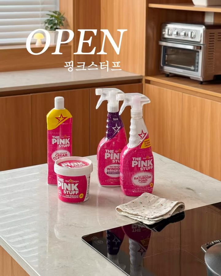 💗 핑크스터프 공구예고 자극적이지 않은 순한 성분으로 효과는 확실한! 아마존 판매 1위 핑크스터프 공구 준비했어요😎 아마존 판매 1위로 유명한 핑크스터프 만능클리너에요 💛 영국 국민 세제 브랜드라 이미 해외에서는 워낙 유명한 제품이고요 후기도 150만개 넘게 쌓일 만큼 검증된 제품이라 더 믿음 가더라구요 욕실, 주방, 창문까지 집안 전 구역 청소가 가능한 진짜 만능템 특히 배스룸과 변기세정제 라인이 제일 인기 많아서 먼저 추천드리고 싶어요✨ 단품으로도 많이 찾아주시는데 배스룸 클리너는 물때 제거에 딱 맞는 pH로 욕실 청소에 정말 잘 맞고요 상큼한 과일향이라 사용할 때 기분까지 산뜻해요 변기세정제는 석회질과 악취제거에 최고! 꼭지형 분출구로 구석까지 깔끔하게 청소하세요 구성도 다양하게 준비했으니 기대해주세요 😘 🔔빠른구매 원하시면 흔적 남겨주세요 좋아요❤️로 알림 드릴게요 :)