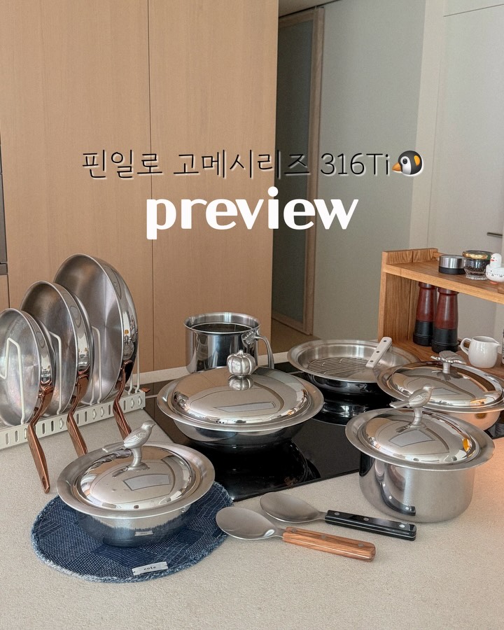 핀일로🥘 고메시리즈 스테인리스 316Ti #프리뷰 🔔오픈 알림신청 원하시면 댓글 남겨주세요🔔 요리를, 집밥을 자주 하다보면 어느순간 깨닳게 되는게 있거든요 왜 똑같이 했는데 그 맛이 안날까? 재료도 비슷하고 방법도 크게 다르지 않은데 묘하게 다른 이유는 ‘도구‘의 차이더라구요🖤 🍳핀일로 고메 시리즈 단순히 예쁜 냄비가 아니라 불에 올렸을 때, 빠르게 반응하는데 바닥면만 또는 한쪽면만 과하게 달아오르지 않고 냄비 전체에 균일하게 퍼지는 열 덕분에 ✔️볶음은 타지않고 ✔️국물은 은근하게 깊어지고 ✔️밥은 속까지 고르게 익어요 요리가 미숙한 분들도 한번 써보면 바로 체감 되는 부분이거든요 바닥만 3중, 5중이 아닌 옆면까지 통 5중 구조임에도 핀일로만의 압착 기술력으로 무겁지 않아 유리 손목이신분들께도 너무 추천 드려요 ☑️ 316Ti 스테인리스 프리미엄 소재로 평생 사용 가능 ☑️ 국내 생산 매일 쓰는 냄비니까 더 중요하게 봐야 되는 스펙들 음식이 직접 닿고 열을 가하는 조리도구라 소재 하나까지 신경써서 고른 핀일로 316Ti 스테인리스 •요리를 자주하는 분들 •아이와 함께 먹는 집밥 챙기는 분들 •요리를 잘 못하시는 분들도 •이유식 유아식 냄비& 프라이팬 찾으시는 분들까지 이건 한번 써보시면 왜 추천하는지 바로 느끼실 꺼예요♥️ ⚫️ 𝐅𝐢𝐧𝐧𝐢𝐥𝐨 고메 시리즈 라인업 ▪️라이스팟🐧 (로우/ 라이 2가지 사이즈)✨서윤맘 추천✨ 깊이감 있는 구조로 수분 유지력이 좋고 열이 고르게 전달되어 밥이 찰지고 윤기나게 익어요 누룽지까지 깔끔하게! •솥밥/ 이유식/ 죽 등 •아이 있는 집 필수템 하이: 2-4인용 솥밥 추천 로우: 1-4인용 솥밥 추천 ▪️멀티팟🌿✨✨✨서윤맘 추천✨✨✨ 높이가 딱 적당해서 손이 더 잘가는 멀티팟/ 파스타팟 채망이 함께 있어 파스타면은 물론, 나물 데치고, 달걀 삶고 꼬치 어묵탕 냄비로도 너무 좋고 보리차물도 끓여요 활용도 최고👍🏻 ▪️스튜팟🍁 오래 끓여도 안정적인 열이 유지되고 깊고 넉넉한 용량 된장국, 찌개, 볶음, 육수 등 국물요리 많이 하는 집에 추천! ▪️컴포트팟🍄🟫✨✨✨서윤맘 추천✨✨✨(찜기까지✔️) 호박모양 손잡이가 묵직해서 음식이 더 맛있게, 고르게 익어요 양 많은 카레, 전골, 샤브샤브, 찌개, 튀김, 조림요리 까지✔️ 스티머 추가해서 찜기로도 활용 가능해서 더 추천드려요!!! ▪️로스트팬🥩 넓은 바닥면으로 열이 고르게 전달되고, 깊이감 있는 후라이팬으로 기름 덜 튀고 수분을 날리면서 조리가 가능해 볶음, 구이용으로 제격 스테이크, 삼겹살, 야채구이, 전, 만두 등 ▪️골드팬💡 (20, 24, 28cm) ✨✨✨서윤맘 추천✨✨✨ 코팅 벗겨질 걱정 없어 교체 없이 사용하는 스테인리스 팬🫶🏻이지만 스텐 예열이 미숙하여 포기하신 분들께 20000% 추천하는 골드팬 22번의 집요한 반복 연마공정으로 코팅이 없어도, 예열이 미숙해도 음식물이 잘 달라붙지 않아서 달걀 후라이도 쉽게 쉽게✔️ 스테인리스 팬은 기름과 열로 코팅을 하여 사용하는 도구거든요 스테인리스 표면에 눈에 보이지 않는 미세한 크랙, 주름 사이에 음식물이 끼어 들러붙는 것으로 열을 가해 팽창 시킨 후 기름을 둘러 그 사이사이를 매꿔주면 코팅팬 처럼 매끄러운 요리가 완성 되구요! 핀일로 골드팬은💡 단순히 매끄러워 보이는 것이 아니라 22번의 공정으로 기공이 최소화 되어 간단한 예열만으로도 편한 요리가 가능합니다! 🏷️공구일정 4월6일 오전 10시 open