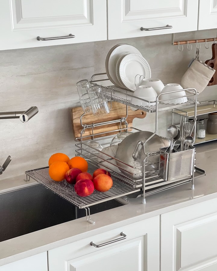 알텐바흐 식기건조대를 사용하면 주방이 정리되고, 무거운 냄비도 안정적으로 올려둘 수 있어 편리합니다. 2단 구조로 공간 활용이 뛰어나며, 배수 트레이에 물이 고이지 않아 관리가 용이합니다.