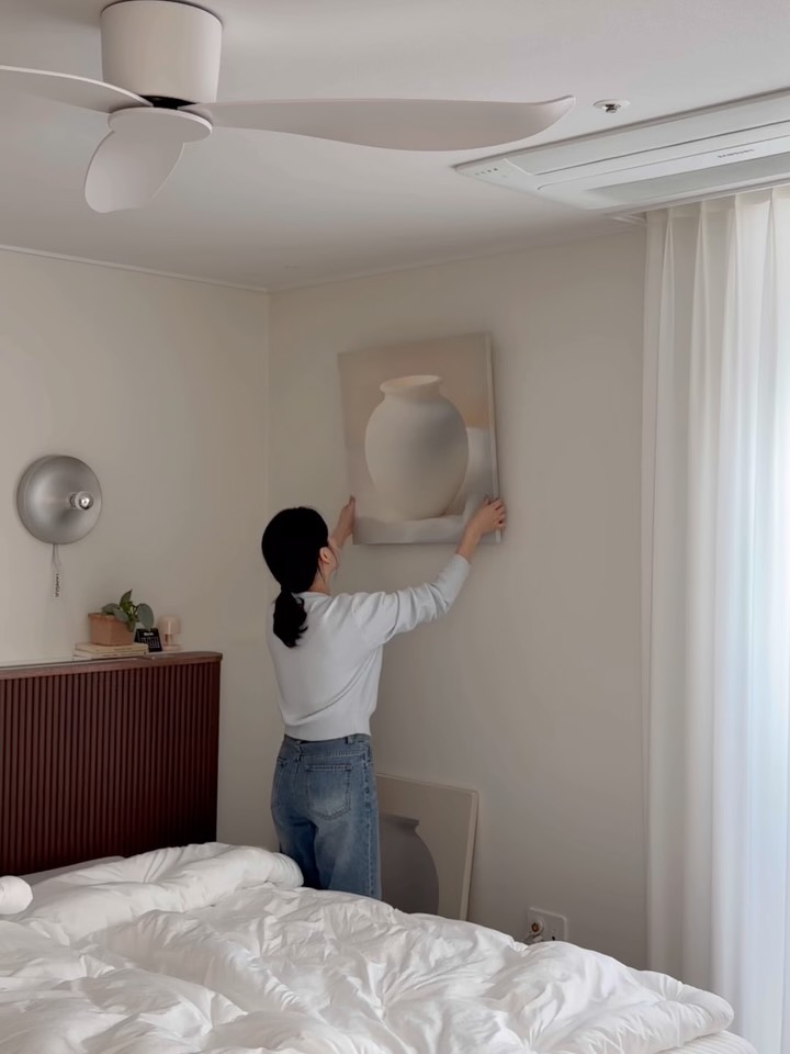 안방에 자리잡고 있는 달항아리 액자! 20호와 30호를 번갈아 걸어두면 기분이 좋아지는 인테리어 소품입니다. 복이 들어올 것 같은 기운을 느껴보세요!
