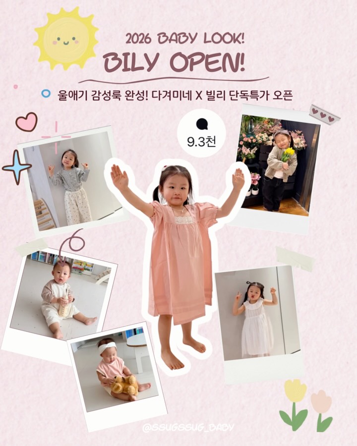 OPEN 빌리 단독최초공구🦄🌈 🌟3/20(금) 오전10시 ~ 3/24(화)🌟 🔔[링크] 댓글 남겨주시면 지금바로 특가링크 디엠전송 드릴게요❤️ *위 배너보다 링크에 상품이 더 다양합니다❗️ 링크 찬찬히 살펴보시구 신나게 담으세요🌈 ─────────── 🎁구매완료 이벤트🎁 구매완료❤️+휴대폰 뒷자리 남겨주세요 1️⃣15만원 이상 구매시 이너백 증정 2️⃣전 구매 고객 국내제작 여성양말 1인당 1개 증정 3️⃣울애기 사이즈 남겨주시면 빌리옷 하나더 (3명) 4️⃣스벅커피쿠폰 (20명) 께 보내드리겠습니다😎🫶🏻 * 1,2번 선물은 전원증정되나, 조기소진시 종료될수 있습니다(한정수량/각200개씩) ─────────── ⭐️프리미엄 원단 & 빈티지감성에 따뜻하고 코지한 무드로 엄마들의 마음을 사로잡은 빌리! 저도 첫째때부터 내돈내산해서 주구장창 입혀온 브랜드이기도 한데요🫶🏻 ⭐️뉴트럴하면서 차분한 색감으로 감성육아룩으로 인기대란인 빌리입니다 미쳤어요 미쳤어 그저 이걸 해내온게 아직도 믿기지가 않음..!!🥹 ⭐️눈크게 뜨고 보세요👀🔥 봄 신상부터 이월까지 이 가격 최초! 현재 매장 가시면 있는 디자인들이에요🙊 ─────────── 🌸빌리 최초공구🌸 ✔️봄 신상부터 이월까지 최대할인 💳5만원 이상 카드 추가할인 5~10% (❗️3/20(금) 공구 오픈당일만 KB 10%) ✔️3/20(금)~22(일) 5만원 이상 베이비키즈페어 적립 10% (최대3만원) ✔️7만원 이상 무료배송 ✅다겨미네 x 빌리 라인업 ✔️사이즈: 1Y (12m) ~4Y(대략 110) (남아 & 여아 모두 가능) 1Y(80), 2Y(90), 3Y(100), 4Y(110) *사이즈 상세페이지 추가참조 ✔️종류 점프수트, 상하복,팬츠(숏/롱),원피스,티셔츠, 레깅스, 가디건, 바람막이, 뷔스티에, 헤어밴드 ✅다겨미네 사이즈팁 다겸: 키 100cm, 3Y(100) 정핏/ 4Y(110)여유핏 서빈: 키72cm, 1Y 전부 여유핏 *위에 배너의 가격은 카드할인&적립혜택이 포함된 가격입니다 *정상가/단독가/최종혜택가 기준으로 보세요! ─────────── ⭐️요즘 브랜드 없는 옷들도 몇만원씩 하는 마당에 빌리를 이 가격으로 만날수 있다니..!! 현재 백화점 가셔도 있는 라인들입니다😎 이 피드를 보신것 자체가 찐으로 행운이지 뭐야🦄🩷 💳카드할인 체크 3/20 (금) 국민10% 3/21 (토) 국민5% / 토스삼성7% 3/22 (일) 국민5%/토스하나 7% 3/23 (월) 롯데5%/카카오국민7% 3/24 (화) 삼성5%/토스하나7% #빌리 #등원룩 #빌리키즈 #빌리베이비