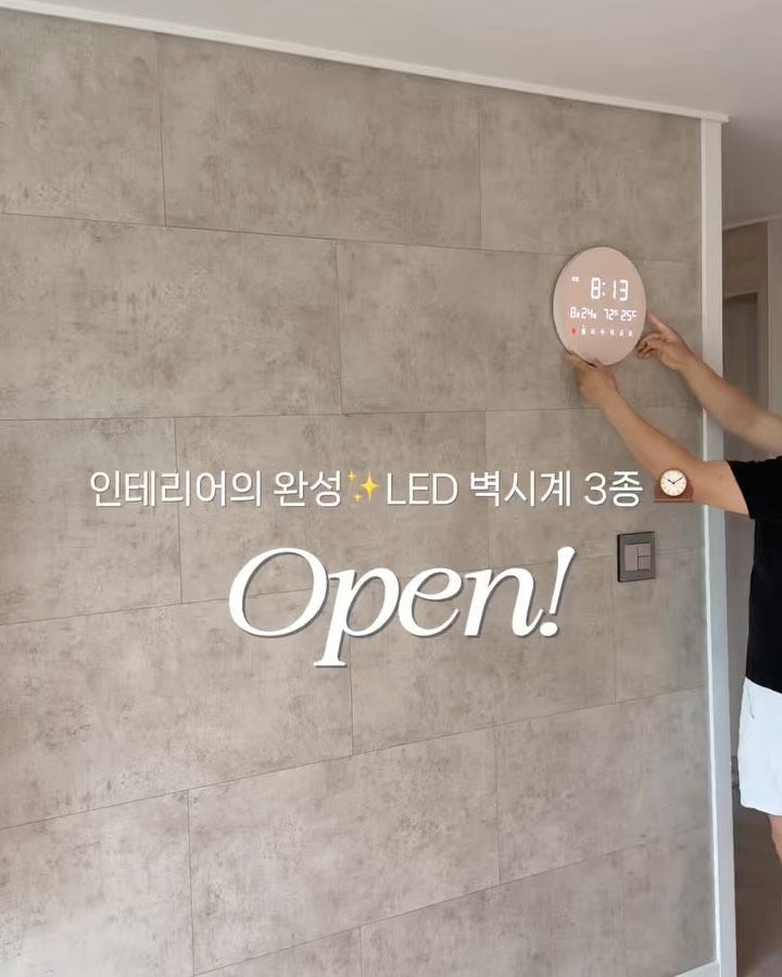 오아 LED #벽시계 3종 오픈🕰️💗 시계 하나만 바꿨을 뿐인데 집 분위기가 정리돼 보이고, 시간 · 날짜 · 요일 · 온도 · 습도까지 집 컨디션이 한눈에 보이는 벽시계😳 🎁 놓치면 후회할 오픈 이벤트 🎟️ 선착순 이벤트 : 5분께 스타벅스 기프티콘 (스피드가 생명! 🏃🏻♀️) 🎟️ 구매완료 : 2분께 3만 원대 디머 무드등 (구매 후 구매완료 +휴대폰 뒤 4자리 댓글!) 💁🏼♀️ 이런 분들, 꼭 들이세요! ✔️ 인테리어 망치는 온습도계, 달력 다 치우고 싶은 분 ✔️ 밤에도 눈 안 아프게 시간 확인하고 싶은 분 ✔️ 간편하게 무타공 설치 원하는 분 ✔️ 무소음으로 숙면 방해 없는 시계 찾는 분 이번 공구도 - 이미 검증된 기존 인기 제품 모던 LED 벽시계 - 3단계 무드등 기능 들어간 ‘데이클락’ 🔥두 가지 라인업 모두 최저가로 오픈합니다🔥 ✅✅ 인기템! 모던 LED 벽시계 (유선 / 무선) “한 번 쓰면 다시 못 돌아가는” 그 시계! ◾ 시간 / 날짜 / 요일 / 온도 / 습도 한 번에 확인 ◾ 3단계 밝기 조절 (자동·수동) ◾ 12H / 24H 선택 가능 ◾ 무소음 설계 ◾ 무선 타입 → C타입 충전 / 완충 시 최대 25일 사용 ◾ 유선 타입 → USB 연결 ◾ 걸이형 설치 ◾ 무타공 설치 가능 💌 심플한 디자인이라 어떤 집에도 실패 없음!! ✅✅ NEW! 데이클락 (유선) “시계 + 무드등 + 집 컨디션 체크” 하나로 끝내고 싶은 분들께 딱이에요! ◾ 전구색 / 주백색 / 주광색 → 3가지 컬러 무드등 연출 ◾ 컬러별 3단계 무드등 밝기 조절 ◾ 무드등 타이머 기능 (자동 ON/OFF) ◾ 리모컨 원터치 제어 ◾ 시간 / 날짜 / 요일 / 온도 / 습도까지 한눈에 확인 👉🏻 기존 제품 대비 ◾ 한글 요일 표시 ◾ 글자 크기 커짐 + 배열 변경 ◾ 3단계 밝기 조절 (자동 또는 수동 선택 가능) ◾ 수면 방해 없는 무소음 설계 ◾ 걸이형 설치 ◾ 무타공 설치 가능 (꼭꼬핀 OK / 별도 구매) 🛏️ 침실, 거실, 아이방까지 전부 잘 어울리는 디자인 밋밋하던 공간이 시계 하나로 정리돼 보이는 순간✨ 우드 프레임이라 과하지 않고, 어디에 둬도 자연스럽게 스며들어요🤎 🔔 지금이 제일 좋은 타이밍 👉🏻 최저가 공구 👉🏻 구매 이벤트까지 🔗프로필 링크에서 구매 가능합니다