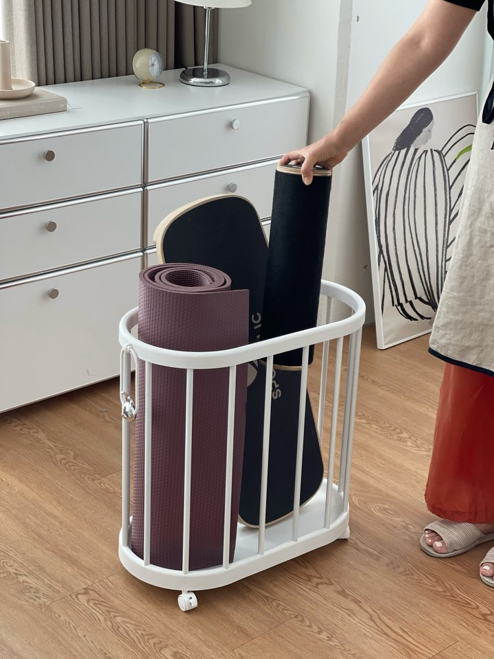 좁은 공간을 효율적으로 활용할 수 있는 이동식 바구니입니다. 필요할 때만 꺼내서 사용 가능하며, 빨래나 잡동사니 수납에 적합합니다.