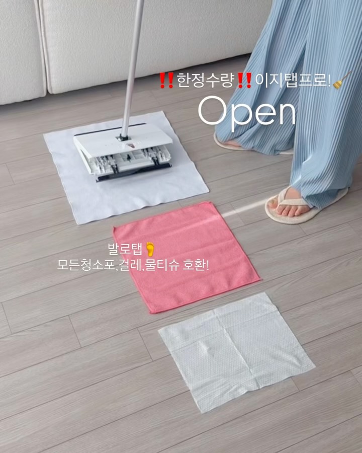 잠시후 10시! 한정수량🚨 이지탭프로 4차공구 OPEN! 📣 ’링크‘ 댓글 남겨주시면 최저가링크 즉시 디엠전송 드릴께요! 💡전쟁이슈로 생산량이 줄어 수량이 적어요ㅜㅜ!! 알림댓글만 2천개가넘어 보신분들은 링크로 달려와주세요🙌 🎁 선착순 20명 전용걸레 1개 추가증정!(별도배송) 🎁 댓글 구매인증 시 네이버페이 1만원 증정!(10명) ‘구매완료+연락처 뒷 4자리’ 비염심한저는 특히 환절기만되면 먼지닦느라 밀대 매일꺼내는데..!🧹 청소포 갈아끼는것도 여간 귀찮은게 아니더라구요🥹 발로 툭 밟으면 걸레가 끼워지는 이지탭프로는 하루에 청소포 10장도 더쓰는 저에겐 정말 신세계😍 물티슈까지 되니까 청소포 떨어져도 안심! ✅손댈필요 없이 발로 툭! 부착,분리를 한번에! 👉🏻걸레 뒤집을때도 발로 툭툭! ✅걸레,청소포,물티슈까지 다~호환가능! ✅밀착력 최고! EVA 바닥폼으로 밀림X ✅360도 헤드 회전으로 구석구석! ✅넘어질 걱정없는 프리스탠딩 기능 ✅손잡이 길이조절로 벽,천장,유리창 ok! 허리굽힐 필요 없이! 발로 툭! 원터치밀대 한번 써보시면 정말 안쓰던때로 못돌아가요…👍 이런템 발견하면 꼭 엄마생각나서.. 시어머니까지 선물해드리니 넘 좋아하시더라구요❤️ 문의많았던 천장닦는 청소포도 프로필링크 쿠팡 추천템에 추가해뒀어요!! 점착식으로 먼지를 가두는방식이라 흩날리지않아 좋고 물기닿으면 안되는 곳(벽지,가구 등등)에도 꼭 강추👍 알림댓글수보다 준비된수량이 적으니 보신분들은 서둘러주세요🙏🏻 ▪️구성 : 이지탭프로 본품1개+전용걸레1장+청소포2팩 🗓️ 공구기간 : ~4/20(월) 마감! 조기품절예상! 📦 오전11시 이전 주문 시 당일출고! 2개까지 합배송가능! #청소#청소템 #이지탭프로#신혼