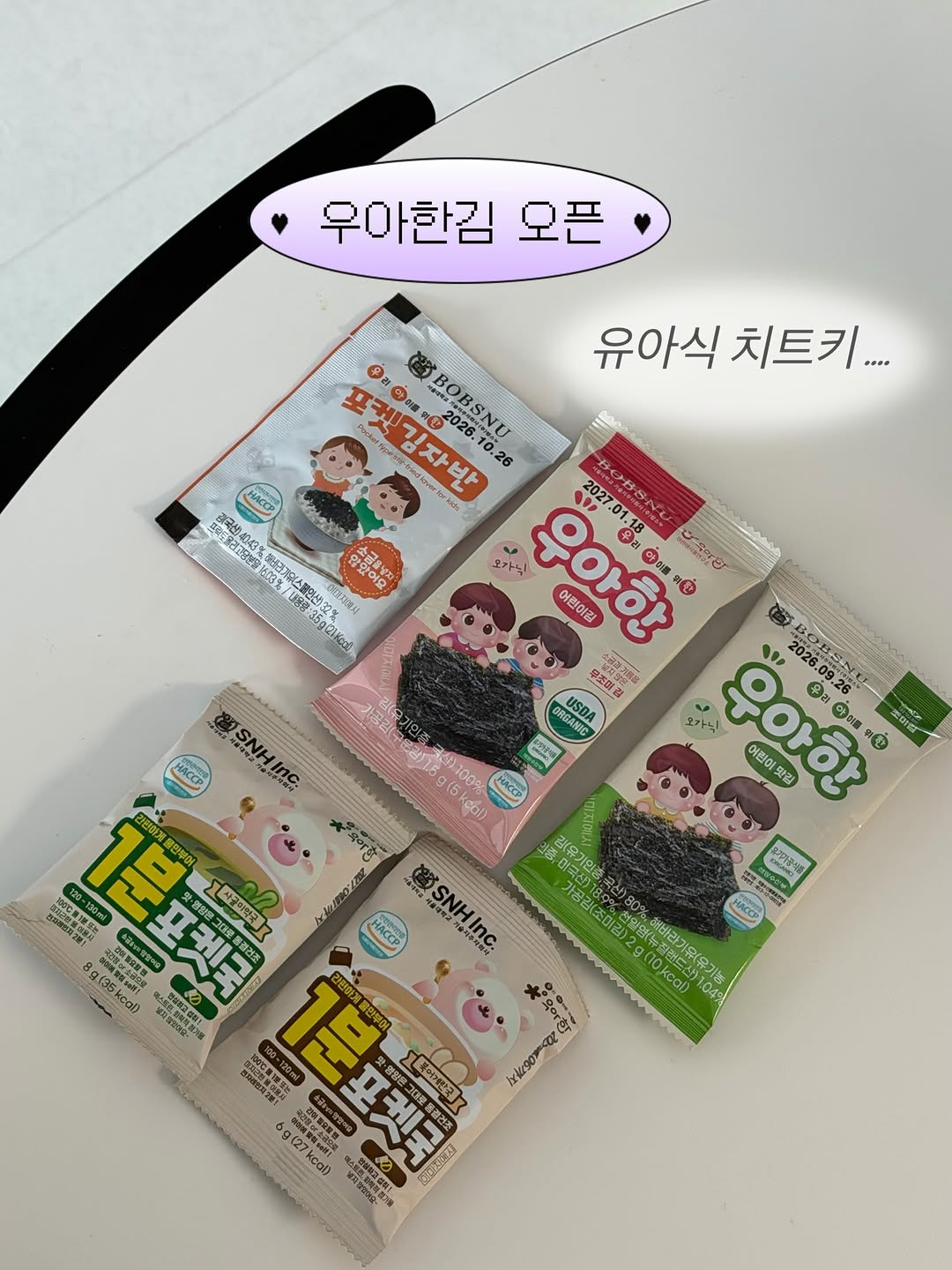 #구매인증여기에 우리아이 김: 우아한김 OPEN ❤️3/30일 오전10시오픈- 4/2일 밤12시마감 ❤️전 라인 무료배송 ⭐️‘링크’댓글 남겨주시면 오픈링크 보내드릴게요 ⭐️구매인증댓글이벤트 ❝ 구매완료+ 전화번호뒷자리❞남겨주세요 네이버페이 3천원권 10분께 쏠게요 🔥🔥🔥🔥🔥🔥🔥 _____________________________________ 드디어 드디어 ㅠㅠ 오픈 🤧🧡 이유식 유아식에 절대 빠져선 안되는 김 ! 포켓 김자반까지 꼭 꼭 챙겨요 ! 제가 늘 내돈내산으로 이서에게 잘먹이고 있고 6세 이서도 아직 분홍 잘먹어요 ! 무조미김인데도 맛나는지 잘먹어서 저는 무조미김(분홍)이랑 포켓김자반 픽 입니다 ☑️100%국산김 , 유기인증식품으로 걱정없이 안전하게 먹일수있어요 🤍 ☑️미국 농림부 유기농 인증식품 김 구매할때, 꼭 확인해보세요 🧡우아한김 포켓김자반 ◻️설탕, 소금X ◻️한끼 소분 포장으로 눅눅해질 걱정 없어요 ◻️밥볼 볶음밥 맨밥 어디든 활용 굿 ◻️외출 외박 여행 필수템 ◻️작은 사이즈로 가져다니기 너무편해요 🩷우아한김 분홍이 (무조미) ◻️소금 X , 기름 X ◻️100%국산김으로만 2번 로스팅해 만들었어요 ◻️ 8개월부터 섭취가능 💚우아한김 초록이(조미) ◻️간을 시작한 유아식 아이부터 초등학생까지 폭넓게 섭취가능해요 ◻️서울대 특허 원료 함유 ◻️ 유기농 해바라기유 ◻️청정한 뉴질랜드 천일염으로 만들었어요 💛1분 포켓국 ◻️여행필수로 챙겨요 ◻️뜨거운물 부어주면 1분 완성 ◻️사골미역국 : 소금간X 국간장1% 저염아기추천 ◻️북어계란국: 무염! 이번 공구도 진짜 놓치믄 안대... 🩷 ☑️생산 날짜 및 유통기한 (최신 생산품 출고) ★ 포켓김자반 : 2026년 11월 이후 / 3월 생산 ★ 무조미(분홍이) : 2027년 2월 이후 / 2월 생산 ★ 조미(초록이) : 2026년 10.24 이후 / 2월25일 생산 ★ 유기농보리차 : 2027년 3월이후 / 3월 생산 ★ 1분포켓국 사골미역국 : 2027년 9월 이후 / 3월 생산 ★ 1분포켓국 북어계란국 : 2027년 9월 이후 / 3월 생산 ★ 한우불고기 이유식 : 2027년 1월 30일 이후 ★ 한우미역 이유식 : 2027년 1월 30일 이후 ❤️3/30일 오전10시오픈- 4/2일 밤12시마감 🚚 전 구성 무료배송 ,평일1시 이전 주문건 당일출고(CJ대한통운) 🤍배송 및 CS문의 : 우아한김 네이버 톡톡 🤍구매완료이벤트 확인 !