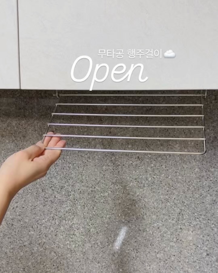 올스텐 무타공 행주걸이 𝙊𝙋𝙀𝙉‼️ 주방에 이거 하나로 위생, 깔끔함 싹 해결✨ 행주, 수세미, 고무장갑 젖은채로 널어두면 쉰내 피할 수 없는데..🤢 공중부양으로 뽀송하게 건조 가능 슬림한 디자인으로 평상시 선반 아래 쏙 숨겨두고 사용할때 슥 당겨서 최대 5장까지 널수 있어요🤗 📍𝘾𝙝𝙚𝙘𝙠 𝙥𝙤𝙞𝙣𝙩 클립형으로 선반에 무타공 설치 녹 부식 걱정없는 국내생산 올스텐304 슬라이딩 접이식으로 효율적인 공간활용 행주 최대 5장 널수 있는 넉넉한 공간 와이어 틈새가 넓어 빠른 건조 📍주문 전 확인해주세요 상부장 두께 15~20mm 상부장 가로 30cm 이하 선반에 사용 가능 🎁 𝙀𝙑𝙀𝙉𝙏 구매완료+핸드폰 뒷번호 남겨주시면 추첨 후 커피쿠폰 3분 보내드릴께요😊 📆공구기간 4/16-19 @miir_home 링크 통해 주문해주세요 #주방템 #행주걸이 #쏘우리프