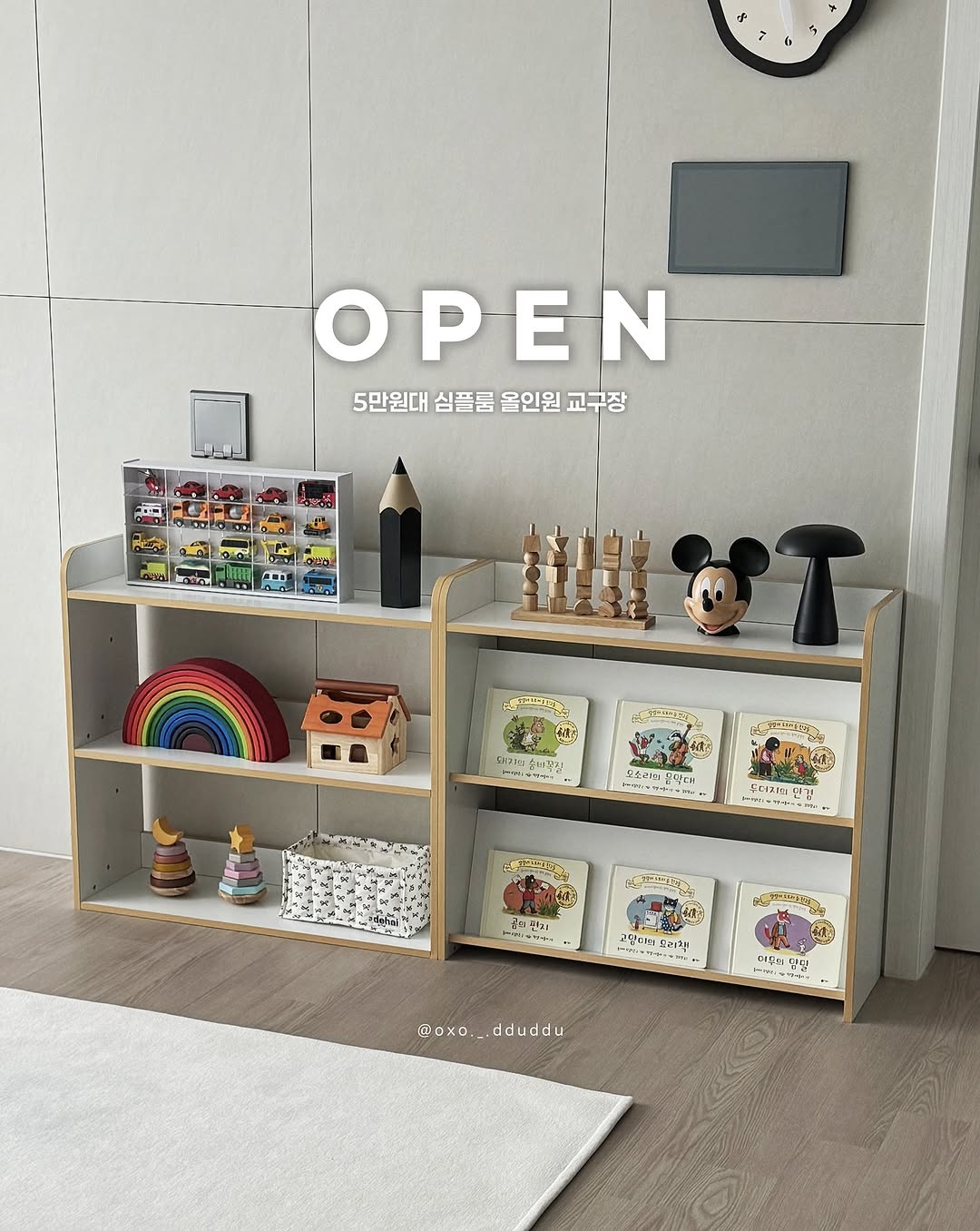 📕 심플룸 올인원 교구장 💌 댓글로 [ 링크 ] 남겨주시면 최저가 링크 디엠 보내드릴께요 우리 아이 첫 교구장 ! 장난감도 수납 해야하고 책도 수납 해야하고 또 책은 전면으로 노출해주는게 좋다는데... 그런 고민을 해결해주기 위해서 심플룸 올인원 교구장이 나타났어요 :) 상황에 맞추어 전면책장 or 교구장 으로 바꿔서 사용이 가능한 심플룸이에요 ! 🚀 𝐂𝐡𝐞𝐜𝐤 𝐏𝐨𝐢𝐧𝐭 ▪ 아이 눈높이에 맞춘 낮은 책장 ▪ 큰 크기의 책도 수납이 가능한 높이 ▪ 안전한 둥근 라운드 마감 ▪ 피스자국도 가릴수있는 스티커 제공 ▪ 스크래치와 낙서에 강해요 ▪ 유해물질X KC인증완료 아기 어릴때는 다양한 장난감과 책들을 자연스럽게 노출시켜주고 흥미를 일으켜주는게 제일 중요하거든요 아이 눈높이에 맞는 교구장으로 어릴때부터 어느정도 클때까지도 충분히 활용해서 쓸수있는 책장이에요 :) 높이가 높지 않으니 아이가 잡고 일어서도 안전하고 아이방은 물론 거실에 두어도 괜찮아요 ! 무엇보다 5만원대라는 너무 착한 가격으로 기능 좋은 아이방 꾸미기가 가능하니까 가성비 제품 찾고 있는다면 꼭 추천드리고싶은 심플룸이에요 ! 📍 공구기간 : 1월 12일부터 1월 14일까지 🎀 지금바로 프로필 링크에서 구매 가능합니다 !