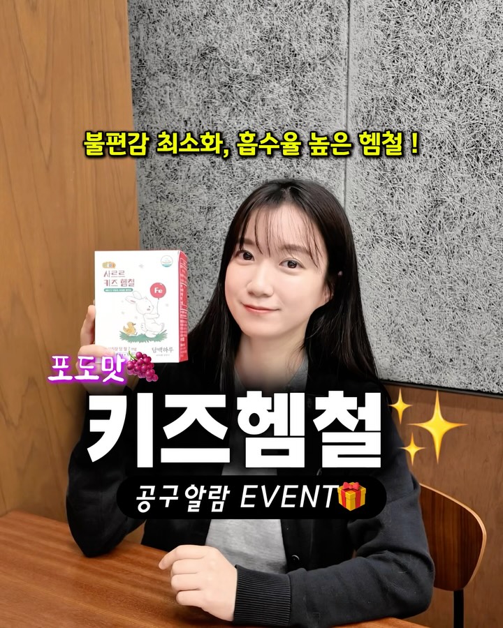 아이들이 편한 담백하루 키즈헴철 공구 알람🍇 : 구매원하시는 분들 댓글에 알람 남겨주시면 5분께 40,000상당의 본품 보내드립니다! 🎁 *일정 : 4/30 ~ 일주일간 철분제 먹이고 싶은데, 매번 고민만 하셨죠? 잘 안 먹고, 작은 친구들, 잘 못 자는 아이들— 철분 부족이 정말 많거든요. 철분은 부족증상을 체크해서 빈혈이 오기전에 보충해야하고, 빈혈이 오게되면 의약품에 준하는 용량으로 치료가 필요해요. 보충제는 그 이전단계! 깨끗하고 질 좋은 혈액은 우리 몸에서 중요한일을 합니다! 🔻대표적인 아이들 철분 부족신호 ✅ 아침에 일어나기 힘들어한다 ✅ 체력이 약하거나 집중력이 약하다 ✅ 다크써클이 있다 ✅ 피부가 하얗고 혈색이 없는 편이다 ✅ 손발톱이 약하고 찢어지거나 깨진다 ✅ 입맛이 없고 입이 짧다 ✅ 손발이 찬 편이다 ✅ 머리카락이 가늘고 약하다 ✅ 입술이 갈라지거나 구내염이 자주일어난다 *제품과 관련없는 일반적인 건강 정보입니다 근데 막상 사려면 딱 드는 걱정이 있죠. 제가 이제품으로 꾸준히 소개드리는 이유랑도 관련이 있어요 ❤️제가 사르르헴철 소개해드리는 이유 ✅ ”헴철“은 흡수율은 높이고, 토끼똥 불편감을 최소화시킵니다 흡수되지 않고 장에 남아있는 철분은 1) 장내환경을 변화시켜 화장실 잘못가게 되기도 하고, 2) 위장 부담을 주기도 하는데, 이부분이 상당히 해결됩니다 ✅ 상호작용이 적고, 음식에 대한 영향도 없어서 - 식전/식후 그리고 아침~저녁 어느때나 OK! • 영양제 스케줄이 필요없어요, 아이도 저도 참 편해요. ✅ 한포 함량 7mg : 6개월 이후 친구들부터~ 두포로는 성인까지 드시기 충분. ✅ 철 특유의 비릿한 맛, 또는 그 맛을 가리기 위한 과하게 단맛 없이 ”정 말“ 시원 상큼한 포도맛! 맛있습니다! ✅ 사르르 녹는 가루라 물없이/물에 녹여 먹어도 좋습니다! 👉가루 양이 좀 있고 입자가 작아서, 어린 친구들은 10ml 내외 물어 녹여주시면 더 잘 먹습니다^^(물은 취향껏 양조절!) 결론 : 꾸준히, 그리고 편하게 줄 수 있어 소개해드려요^^ 🔻특장점 요약! - 한포에 헴철 7mg -사르르 녹는 포도맛 -물없이/ 물에타도 맛있습니다 -화장실 못갈확률 가장적음 -흡수율 높은 형태! -영양제 상호작용 거의없고 -공복, 식후 상관없어 아무때나! 🔻추천용량 -6개월 이후~ 초등학생: 1일 1포~2포(부족증상시) -남자) 12세 이후 ~ 고3 : 1일 2포 -여자) 12세~ 가임기 여성: 1일 2포 *필요에 따라 증량 가능하나, 식이 보충되는 양 고려하여 30mg 이상은 장기 복용 추천드리지 않습니다. 츄어블 철분은 리뉴얼중으로, 이번 공구는 쉬어갑니다! 일정 정해지면 다시 안내드릴게요🥹 궁금한점 댓글 편하게 남겨주세요^^ @beige_yaksa