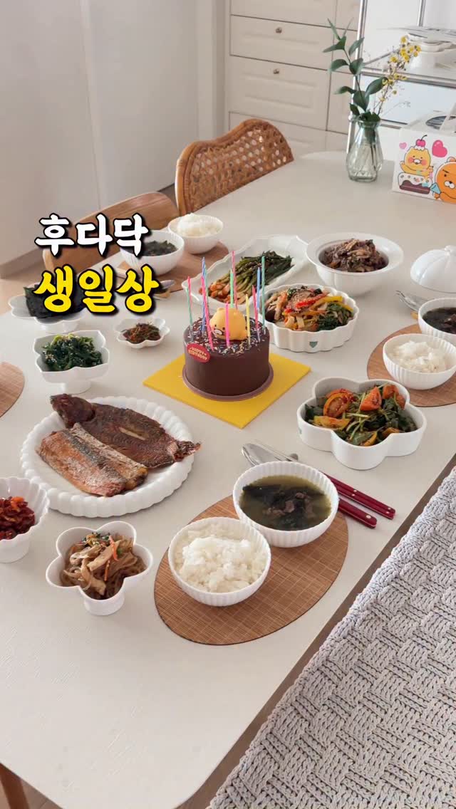 🎂48살 삼식씌 생일상 (차려줬다! 릴스 박제ㅋㅋㅋㅋ) 토요일 전주에서 신나게 덕질을 마치고, 부산 집에 들어온 시각 새벽 1시반…😅 후딱 씻고 콘서트 여운에 빠져 있다보니 3시..🫣 일요일이 삼식씨 생일이라, 새벽배송으로 재료 주문은 해두었던지라.. 아침에 쬐끔 늦잠자고 일어나 후다닥 생일상 준비했네요. ㅋㅋ 덕질 이해해주는 삼식씨에게 고맙기도 하고, 또 미안한 마음 + 도둑이 제발 저려 눈치보느라 ㅋㅋ 상다리 부러지게 차리고 싶었지만, 대충 생일상 대표메뉴 몇가지로 ㅋㅋㅋ 적당하게 생색낼만큼 차려보았습니다. 소고기미역국, 잡채, 생선구이, 불고기.. 가마솥밥도 하고! 아, 요즘 참나물 맛있더라구요. 짭잘이토마토랑 같이 느코, 액젓, 백간장, 고춧가루, 마늘 쬐끔~ 설탕이랑 화이트발사믹 콸콸 느코 버무리니 기깔나게 맛있더라구요! 요거 만들어 드셔 보세요 ㅎㅎ 네, 암튼 그렇게 조금 늦은 아침상 차려줬네요😁 애들이 전날 파바에서 사놓은 춘식이케이크까지!! 완벽한 생일 아침이쥬? ㅋㅋ 삼식이는 조케따~~ 사랑받아서~~흐흣 스토리보고 생일 축하해주신 분들 감사합니다..!! 다 전해 드렸어요?? ㅋㅋㅋ 연예인병 걸릴까 걱정 ㅋㅋㅋㅋ ✅뭘 만들어도 맛있는 햄튼 무쇠냄비 무쇠팬 ⏰오늘 자정 최저가 공구 마감입니다! 이번엔 베이비웍, 가마솥 구매해주시는 분들 많으시더라구요! 일반 무쇠보다 가볍고, 코팅 짱짱해서 시즈닝 관리 필요없이 휘뚤마뚤 쓰기 편한 햄튼❤️ 최저가 공구 놓치지 마시옵소서! 그럼 저는 어제의 숙취로 인해,, 해장 좀 하러 가겠습니다아….🫠 내가 다시는 술 마시나 봐라……ㅋㅋㅋㅋ 즐거운 한주 되시어요, 우리님들💛 #생일상 #생일상차림 #생일상메뉴 #햄튼공구