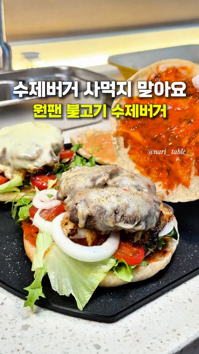 💫영상 속 손정옥언양불고기 공구중 📍기본 버거소스 (버거 1개 기준) 마요네즈 3스푼 케찹 2스푼 머스타드 2스푼 후추 조금 📍고추장 버거소스 (버거 1개 기준) 손언불 소고기볶음고추장 1스푼 마요네즈 3스푼 가루 알루로스 1/2스푼 화이트발사믹 1.5스푼 후추 조금 (기호에 맞게 재료 가감해주세요^^) 📍사용한 제품(프로필링크에 올려뒀어요) ✔️캘리포니아 셀렉트 팜즈 페퍼잭 치즈 (매워서 어른용 패티에 올림) ✔️알라 하바티 슬라이스 치즈 (아이용 패티에 올림) ✔️퀵쿠킹 유기농 구운감자스틱 📍버거 만들기 1.위 재료로 소스 먼저 만들어 30분 이상 숙성시키고 2.토마토, 양파, 양상추도 먹기 좋은 사이즈로 잘라 준비합니다. (이때 양파는 볶아줘도 좋고, 기호에 따라 생으로 넣어드셔조 좋습니다) 3.에어프라이어에 감자튀김과 버거번 구워주는 동안 4.손언불 치대어서 패티모양으로 만들어주세요. (패티가 너무 두꺼우면 익는데 오래걸리니 이왕이면 얇게) 5.패티는 앞뒤로 뒤집어가며 익혀주고 마지막에 치즈 올려요 6.버거번 양쪽에 만들어둔 소스 바르고 7.야채,토마토,패티 순으로 올리고 후추 조금 뿌려 뚜껑 닫아주면 완성! 제가 손정옥 언양불고기 활용 레시피 여러가지 가지고있지만 이건 🏆 탑 오브 더 탑 입니다! 이날 사실 버거를 만들 생각이 없었어요😅 그래서 버거번, 양상추, 토마토 아무것도 준비가 되어있지 않았는데 이날 저희 딸이 큰 상을 받았고 저녁으로 특별한 걸 먹고싶다고 하더라구요 그래서 냉장고 뒤지고 뒤져 🍔 버거번 대신 피타브레드 🥬 양상추 대신 샐러드채소 🍅 토마토 대신 방울토마토 사용했는데… 역대급 수제 불고기버거의 탄생👑 사실 손정옥 언양불고기 패티랑 제가 만든 버거소스가 다 했던거같아요☺️ 저도 집밥에 진심인 사람이고 특히나 저희아이 먹는거엔 더더더 진심이라 정말 열심히 삼시세끼 만드는데 🥘 아무리 🤯 머리를 쥐어짜도 왜 내가만든 국, 찌개, 볶음은 항상 비슷하고 🥲 영상 속 여자들은 메뉴도 귀신같이 잘 뽑아내고 플레이팅까지 완벽한지….😞 ☝🏻그런데 똑같은 식재료도 조금만 바꿔주면 근사한 메뉴가 되버리고🪄 가족들은 이거 사온거 아니냐며 엄마 어깨 😌으쓱거리는 말을 해주더라구요 오늘 받아 보실 손언불 가장 기본방법으로 그냥 구워먹어도 맛있지만 주말에 엄마표 🍔 손언불 수제버거 어떨까요? 주문량 폭주한 손정옥 언양불고기는 일요일 오전 11시59분에 마감할께요! 장담하건데 오늘 받아보시고 바로 재주문 하게 되실꺼에요☺️ #나리테이블 #손정옥언양불고기 #손언불 #버거 #수제버거