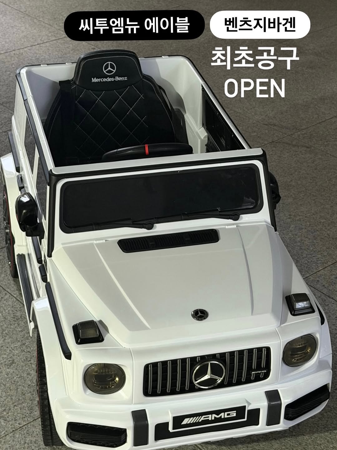 네 ? 벤츠 전동차 공구요 ? 씨투엠뉴 벤츠 지바겐 전동차 #open 📆4/22 오전10시 - 4/27 밤12시마감 ✅댓글에 ‘링크’ 남겨주시면 구매링크 바로보내드릴게요 ✅구매완료 + 전화번호 뒷 네자리 남겨주시면 추첨을통해 네이버페이 5천원권 보내드릴게요 ✅선착순 구매 5명 바퀴커버 증정 공구 절대 없던 그 전동차 최초공구 ! 최저가 옵니다! 이모삼촌들이 먼저 사주고싶은 돌아기선물 결혼식 화동 돌잔치 입장 전동차로도 유명할만큼 거의 국민템인데 정말 정말 어렵게 공구로 데려왔어요 채이 돌선물로 들인건데, 이서언니가 더 탐내고 매일 끌고 나가자고해서 매일 밤산책중이에요 ㅋㅋ 이거 돌때 잠깐 타는거 아니고 내부가 넓게빠져 애 둘도 태우고, 8세 형님언니들까지도 탈수있는 사이즈라 한번 들여 초등까지 탈수있고 1:1 무선리모컨 조정가능해서 아기들은 엄마아빠가 조정해서 태워주고 형님언니들은 스스로 운전해보고 리모컨으로 긴급정지•제어 가능한 모델이에요 ! 높은 차체로 안전하고 투오픈도어로 문열고 내릴수있어 편하고 국내유일 우레탄 타이어에 고급진 프리미엄 가죽 5점식 벨트로 아이 안전하게 잡아주고 3단계 속도조절과 슬로우 스타트•스탑 -> 천천히 출발/정지 가능해 아이들 목꺽임 방지도 OK ! 🚘 옵션 : 화이트/ 블랙 ✅벤츠 라이센스 계약 ! KC 안전인증 OK ✅ 투오픈 도어 : 실제 차량과 같이 그대로 재현된 개폐식 오픈도어로 만들었어요 (문 열리는지 꼭확인!) ✅높은차체로 안전 : 높은 양쪽문을 그대로 재현하여 아이의 몸을 완벽하게 감싸주어 더욱 더 안정적입니다. ✅원터치 핸드캐리어: 차량 뒤쪽 바닥에 캐리어 손잡이가 있습니다 실내• 실외 이동시 간편하게 들어 끌 수 있어 편리합니다 ✅ 넓고 안락한 내부 : 1인용으로 나왔지만 아이 두명도 태울수 있는 넓은 내부가 진짜 장점 ! ✅ 1:1방식 무선 리모컨: 1:1 셋팅으로 혼선이 없고 긴급 정지버튼과 3단계 속도조절 버튼으로 좀 더 안전한 주행을 할 수 있도록 도와줍니다 ✅ 오토 브레이킹 시스템 ✅ 5점식 안전벨트 ✅ AMG 고유의 디자인 ✅ 국내 유일 우레탄바퀴 ✅ 12V 듀얼모터 ✅ 프리미엄 가죽시트 ✅ 후륜 서스펜션 장착 ✅ LED 헤드라이트/테일램프 점등 ✅ MP3/USB 멀티미디어 재생 ✅ 3단계 속도조절/ 슬로우 스타트 • 스탑 ✅ 크락션 멜로디 📆4/22 오전10시 - 4/27 밤 12시까지 🚚평일 1-3일이내 출고예정 💛배송 및 CS문의 프로필링크 씨투엠뉴 CS채널