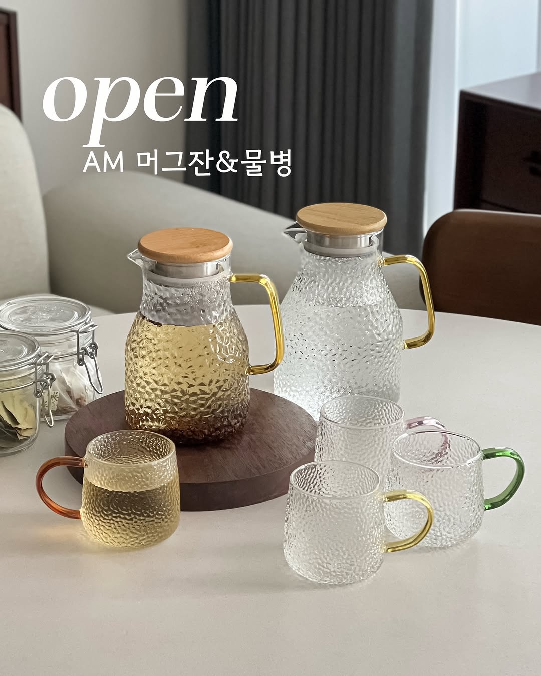 🤍AM 머그잔&물병 공구예고 세계적으로 인정받는 명품 브랜드 AM 잔이 예쁘면 물 한 잔을 마시는 순간의 기분부터 달라지죠✨ 이탈리아와 유럽의 감각적인 디자인은 물론 실생활 활용도까지 완벽하게 설계된 AM 머그잔 3종과 물병 라인업을 준비했어요 이번 공구는 잔잔한 바다 물결 같은 펀칭 질감이 매력적인 라운드 머그부터 뜨거운 음료에도 손 데일 걱정 없는 더블월 머그 3종까지 알차게 구성했어요 특히 물병은 단순한 용기를 넘어 가스레인지와 하이라이트 위에서 직접 차를 우릴 수 있는 주전자로도 활용 가능한 실용성을 자랑해요 -20도에서 150도까지 견디는 강력한 내열유리 소재라 전자레인지, 식기세척기, 냉장/냉동 어디든 안심하고 사용하세요👍 엄격한 품질 관리와 국제 인증을 통과한 프리미엄 퀄리티, 홈앤홈에서 내일 만나보세요~ 🕒공구기간 4월3일-재고 소진시 마감 🙋♀️빠른구매 원하시면 흔적 남겨주세요 좋아요❤️로 알림 드릴게요 :)