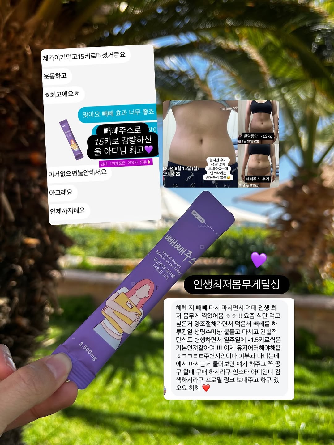 ⠀ ⠀ 5년차 매차수 늘 인기가 많은 보라빼빼💜 제가 가장 오랫동안 함께해온 제품인만큼 자신있게 늘 추천 ! 이유있는 결과로 그냥 물 대신 빼빼로만 바꿔줘도 작은 변화가🫧 보라빼빼 주말에 마감할게요🙏 ⠀ ⠀ ⠀ ⠀ 💟 빼빼주스 5+1 10+4+잠옷 공구중