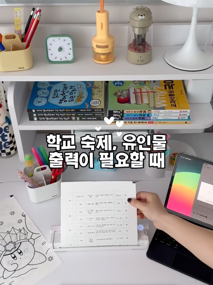 워크지 출력은 물론 학교 앱 유인물 출력까지✔️ 잉크가 필요없는 〰️ 잘쓴 무선 프린터 공구중!📇 집에서도 휴대용으로도 활용하기 딱이에요🩵 기존의 큰 프린터의 단점들을 싹 — 없애고, 장점만 모아온 제품이에요! 번거로운 잉크교체, 잉크 굳음 현상, 부피가 커서 자리차지때문에 망설이셨다면 무조건 추천드려요. 사용할수록 더 만족하는템! 한글워크지, 수학&영어 워크지 출력도 가능, 아이들 사진도 바로 출력 가능, 급한 아이들 숙제도 걱정없이 바로 출력 가능!!! 카톡으로 오는 파일들 출력도 가능하고, 사진첩에 있는 사진들도 출력이 가능하답니다. 3cm슬림하고 작은 사이즈라 휴대성도 좋고, 파우치도 포함되어있어서 출장 & 여행 등 야외에서 필요하실때도 편하게 사용하실 수 있어요☺️ **구성안내** 잘쓴 스마트 앱 프린터 본체 기본 A4용지 100매 C타입 충전케이블, 휴대용파우치, 용지홀더 감열식 방식으로 흑백 출력만 가능! 전용 용지 사용으로만 가능한 점 참고하셔요. ✅휴대용 프린터 전문 기업에서 생산 ✅잉크없이 출력 가능한 휴대용 무선프린터 ✅감열지 방식으로 흑백 출력만 가능 ✅3cm두께의 슬림한 본체 ✅스마트 앱 어플로 편리한 사용가능 ✅BPA free ! 인증기관 완료된 용지 ✅말리지 않는 접지형 A4용지 ✅어플로 한글/영어/숫자/색칠놀이/컬러링북 다양한 자료들 다운 ➟ 출력도 가능! * 무상 A/S 2년 가능!! #잘쓴프린터 구매는 @luvyul_home 프로필링크 접속🔗 #아이있는집 #무선프린터 #잉크없는프린터 #프린터추천