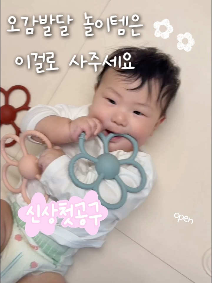 🧠 이 시기엔 장난감보다 ‘자극’이 더 중요해요. 쀼맘X보이보이 단독공구 신상 출시했어요!!!! 제가 처음으로 보여드릴게요 [쀼마켓 오픈] 보이보이 오감발달 놀이 4가지 💬 댓글에 [ 4 ] 남겨주시면 DM으로 링크 바로 보내드릴게요 💌 📌오픈기간 : 3월 24일 ~ 3월 31일 ----------------------------------- 거창한 교구보다 지금 시기에 맞는 자극이 더 중요하더라구요 💛 그래서 준비한 두뇌 + 신체 발달 감각놀이 4종 ┄┄┄┄┄┄┄┄┄┄┄ 💗 ① 하트링 ✔️ 다양한 모양과 촉감 ✔️ 손바닥 감각 자극 ✔️ 물고 빨아도 안심 → 구강기 아기에게 딱 맞는 첫 촉감 놀이 아이템 ┄┄┄┄┄┄┄┄┄┄┄ 🔔 ② 딸랑이 볼 ✔️ 잡고 · 흔들고 · 깨물며 오감 자극 ✔️ 자극적이지 않은 은은한 소리 → 소리 + 촉감 + 시각 자극까지 한 번에 연결되는 놀이 ┄┄┄┄┄┄┄┄┄┄┄ 💦 ③ 워터매트 (저번 공구가보다 -1,000원) ✔️ 터미타임을 놀이처럼 ✔️ 거울 보며 자기 인식 자극 ✔️ 아크릴 거울 / 탈부착 가능 ✔️ 소서, 점퍼루 아래 깔아도 활용 가능 → 촉감 + 시각 자극 동시에 ✔️ 쓸데없이 큰 사이즈 말고 딱 쓰기 좋은 사이즈라 더 활용도 좋아요 ┄┄┄┄┄┄┄┄┄┄┄ 🌸 ④ 블루밍 플라워 치발기 (신상) ✔️ 5개의 꽃잎마다 다른 촉감 포인트 ✔️ 열탕소독 / 세척 모두 가능 ✔️ 하트링에 연결해서 사용 가능 ✔️ 사이즈가 커서 → 쥐기, 물기, 탐색까지 다양하게 활용 가능 → 이번에 쀼맘 첫 단독공구로 가져온 신상템이에요 💛 ┄┄┄┄┄┄┄┄┄┄┄ 놀이가 곧 발달이에요. 우리 아이 두뇌와 신체를 자연스럽게 깨워줄 감각놀이 이번에 꼭 챙겨보세요 💛 ┄┄┄┄┄┄┄┄┄┄┄ 댓글에 [ 4 ] 남겨주세요 ˚ 。ॱ ˚ ♡ 오픈되면 링크 바로 보내드릴게요 💛 #육아 #육아템추천 #육아필수템 #감각놀이 #치발기