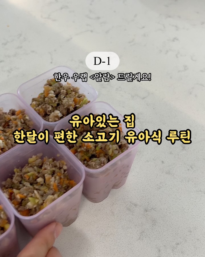 D-1 🔥4월부터 가격인상 예정🔥댓글에 <알람> 남겨주시면 3월26일 목요일 오전10시 오픈시 디엠으로 구매링크 보내드릴께요🫶🏻 ‼영상속 유아반찬 레시피는 내일 오픈피드에 자세히 보실 수 있도록 링크 넣어둘게요. ‼️한정수량이 있으니 필요하신 분들은 오픈시 조금 서둘러주세요. ➖➖➖ 🙋🏻♀️안녕하세요:) 강미즈에요! 한달에 한번 열리는 이.유아식 한우우랩! 우랩은 7일 이내 도축한 한우암소를 주문후 손질해 보내주기때문에 받으신 날부터 냉장상태로 최대 2주정도 냉장보관이 가능해요! ⚠️냉동은 1년까지 가능해요. 저같은 경우엔 우랩 받은 날부터 1-2주안에 1️⃣2️⃣3️⃣번 해두어요. 1️⃣만소야 만들어두기 2️⃣소고기국 (국물없이)냉동해두기 3️⃣불고기 만들어두기 ⚠️만소야: 우랩 만소야팩(강미즈 단독공구) ⚠️소고기국: 우랩 국꼬기 or 우랩만소야팩 ⚠️불고기: 우랩 불꼬기 ‼️만소야팩은‼️ 소고기 다짐육 200g을 한번에 사용할수있게 포장해 두어 만능소고기야채볶음을 만들거나, 아직 국꼬기입자가 크게 느껴지는 아가들 냉동국 만들때, 함박스테이크 만들때 등 사용에 추천드려요. 4️⃣소분된 고기 2가지로 한끼용 반찬 만들기 ⚠️자기주도우랩볼(다짐육): 햄, 동그랑땡 등 ⚠️밥태기손질한우(한입크기): 장조림, 덮밥 등 5️⃣반찬없는 날, 구이용 고기 올리브오일 칙칙뿌려 중약불로 윤기나게 구워준답니다😊 이렇게 루틴을 만들어두면, 유아식이 훨씬 수월해져요🙌🏻 여러분도 저와함께 한달이 쉬운 소고기유아식 만들어보아요🫶🏻 📍만능소고기야채볶음에 사용해요. ▫️우랩 만소야팩(1구/1팩 포장) ⚠️강미즈 단독공구 한정수량으로 품절시 (자기주도우랩볼(6구/1팩 포장) 구매하시면 되요. 📍국&불고기 조리에 사용해요. ▫️국꼬기 ▫️불꼬기 ⚠️개월수가 어리다면, 다짐육(만소야팩)사용 추천! 📍1-2인분 반찬용 추천(6구 소분) ▫️자기주도우랩볼 (다짐육) ✔️초기유아식 반찬&국 추천 ▫️밥태기 손질한우 (유아한입크기) ✔️15개월이상 아기 반찬&국 추천 ⚠️구이용가능 : 올리브오일 뿌려 그냥 구워먹어도 맛있어요. ‼️4구 밥태기 손질한우(50gX4 = 200g)‼️ ▫️기존 6구(33gX6)보다 넉넉한 양으로 15개월이상 아가 한입용 반찬용, 국용, 구이용으로 추천드려요. ▫️구이로 사용시 올리브오일뿌려 약불로 휘릭 야들하게 구워주세요. 📍초기이유식부터 추천(6구 소분) ▫️이유식 우랩볼 📍구이류(18개월부터 추천) ▫️세모구이(삼각꽃살) ▫️네모구이(설깃살) ▫️손칼집 채끝구이(채끝살) ▫️한입 부채구이(부채살 / 6구 소분) ▫️제비츄리 ‼️구이제품 선택시 참고해주세요 ‼️ 두껍지 않고 살코기가 연해 부드러운 네모구이(1구 트레이), 두께감있고 쫄깃한 식감을 원한다면, 세모 구이(1구트레이) 제품을 추천드리며, 차돌박이처럼 얇고 잘 찢어지는 식감을 원하신다면 부채구이(6구 트레이), 적당히 두께감이 있으면서도 손칼집으로 부드러운 채끝구이(6구트레이) 중에 원하시는 식감과 부위로 선택해주세요. ⚠️우랩한우는 모두 200g씩 포장되어 있어요. 🎁구매후, 오픈영상 댓글에 구매완료+전번뒷자리4개 남겨주시면 추첨을 통해 5분께 신백상품권 보내드릴께요♥️