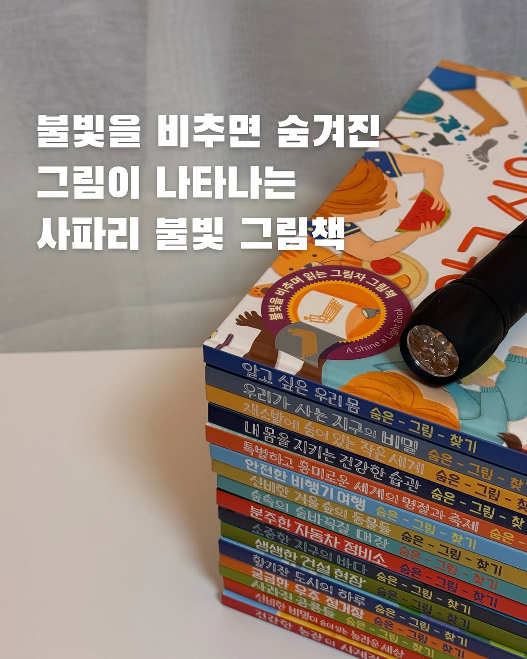 이건 그냥 읽는 책이 아니라 🔸 먼저 질문 던지고 🔸 아이가 생각해보고 🔸 불빛으로 직접 확인하는 “놀이처럼 배우는 책”이에요 :) 불빛 비추는 순간 ✨ 숨겨진 그림이 딱 나타나니까 아이 반응이 “책 보자!”가 아니라 “이거 또 하자!”로 바뀌어요 😳 그래서 한 번 보면 계속 꺼내오는 책 🤍 공룡 · 우주 · 우리몸 · 자연 · 탈것 아이들 좋아하는 주제는 다 들어있고 교과연계라 놀면서도 자연스럽게 지식 쌓이는 구조예요 특히 자기 전에 불빛 비추면서 보면 책 읽는 시간이 아니라 놀이시간처럼 느껴져서 훨씬 집중해서 보더라고요 🌙 📌 20권 전권 구성이라 오래 보는데 ✔️ 4권씩 선택도 가능해서 부담 없이 시작도 가능해요!! 이런 책은 “필요할 때 사야지…” 하면 막상 질문 쏟아질 때 없어서 다시 찾게 되는 템이에요 🥲 이런 책은 필요할 때 사려고 하면 늦어서 미리 들여두시는 게 훨씬 좋아요 🤍 📆 공구기간: 4/2-4/8 👉🏻 자세한 구성 & 가격은 프로필 링크에서 확인해주세요 :)