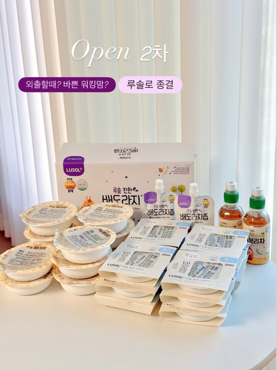 [공구예고] 명절전 이유식 쟁일 마지막 기회! 루솔 2/9 10시 OPEN 🎉사전예고 𝙚𝙫𝙚𝙣𝙩 댓글에 [알림] 달아주시면 오픈 후 링크 보내드리구요💌 루솔 푸룬배도라지즙(20포) 1box 추첨 2분께 보내드려요 (도토맘 팔로우 필수❤️/ 소비기한 26.05.09까지) ✔️공구기간 : 2월9일(월) 10시 ~ 2월11일(수) 자세한 배송사항은 아래 참고해주세요👇 ───♡──────♡──────♡─── 시판이유식 6개 브랜드 먹여보고 N번째 재구매하는 국민 이유식 루솔🍚 이번 명절 엄마표 이유식 가지고 시댁, 친정 가져가기 불편하고 장거리 이동하면 혹시나 상할까 걱정도 되구요🥲 이럴땐 무조건 시판이에요..🥹🥹 루솔 미리 준비하셔서 명절엔 우리도 푹 쉬어요😌 그리고 다른 이유식 브랜드도 많지만 루솔을 선택한 이유는 유기농 쌀🌾, 무항생제 한우🐂 함량, 가격💵따졌을 때 루솔이 가장 부담 없더라구요 공구기간동안 주문하시면 명절 전에 받아보실 수 있구요 (제주, 도서산간은 첫날 주문 추천드려요) 살고계신 지역에 따라 택배 지연이 발생 할 수 있어 빠른 구매 추천드려요🏃🏃♀️🏃♂️ ───♡──────♡──────♡─── 🍚루솔 이유식 특징🍚 - 엄선된 유기농 쌀 - 잔류농약 검사 - 무항생제 한우 - 당일 납품되는 신선한 재료 사용 - 무보존제, 무색소, 무설탕 - 안전하고 깨끗한 세척 ▶️냉장 이유식 2단계 (아기죽) : 7~8개월 3단계 (진밥) : 9~11개월 4단계 (아기밥) : 12개월 이상 -> 10팩 / 20팩 세트 선택가능 9,500원 상당 한우토핑 증정🎁 🙋♀️명절기간동안에 먹이시려면 20팩 추천드립니다 ▶️바로밀 실온이유식 2단계 (아기죽) : 7~8개월 3단계 (진밥) : 9~11개월 4단계 (아기밥) : 12개월이상 -> 상온에서 10개월 보관가능 작두콩 보리차 2병 증정🎁 🚚 배송 안내 ✅2/9-10 이 기간은 모든 지역 택배 원활하게 발송 ✅2월 11(수)~ 제주/도서산간 마감 17(화)~18(수)로 배송예약 설정 시 > 14(토) 으로 미리 받게 됩니다 19(목) 예약 설정 시 > 20(금) 수령으로 변경됩니다 >> 변경 시 문자 안내 예정 ▪️주문일 포함 +20일 지정일 수령 가능 배송메세지/배송요청사항에 받을 날짜를 써주셔야합니다! ───♡──────♡──────♡─── 급하게 쿠*에서 사면 진짜 비싸더라구요…🥲 그리고 저도 핫딜 링크 친구가 가끔 보내주는거 보면 생소한 사이트 가입해야하고 쿠폰 받아야하고… 귀찮아서 안사게 돼요ㅠㅠ 도토맘 구매링크는 카카오톡딜이라 구매도 간편✨ 명절 택배 마감 전 저와 함께 우리애기 명절 맘마 쟁여요😀 ✅ 알람 달아주시면 이벤트 참여, 핫딜 링크 전송 드릴게요❤️