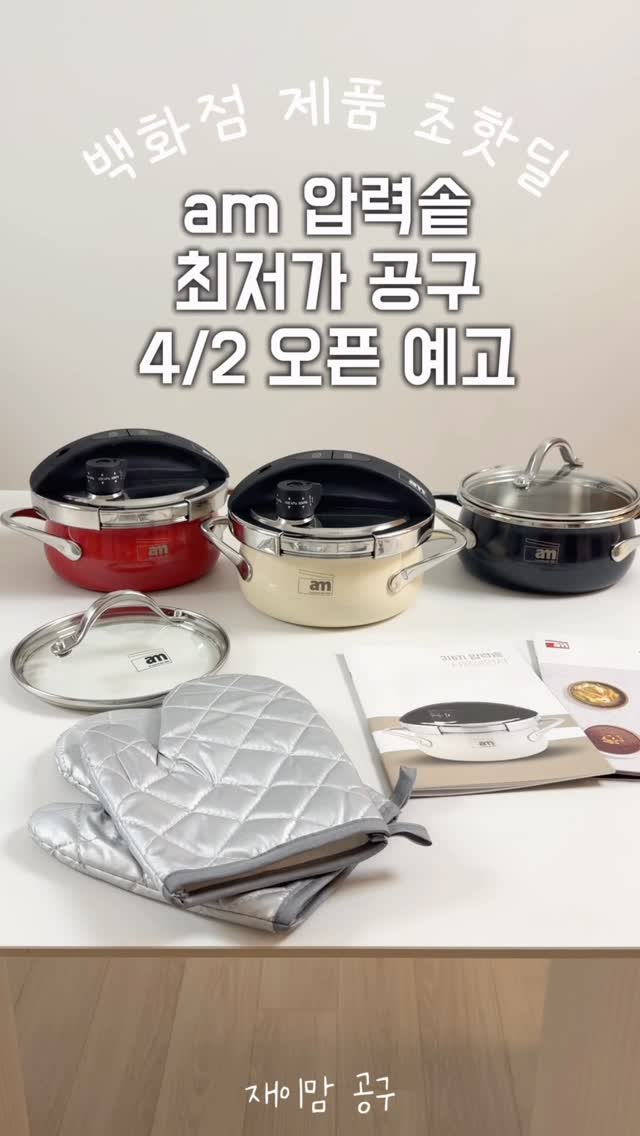 4월 2일 오전 10시 am 압력솥 최저가 공구 오픈해요! ➡️좋아요+저장+공유> 해주시는 센스😘 빵빵한 이벤트와 함께 옵니다🎊🎁 압력 요리 좋아하시는 분이라면 이번 최저가 기회 놓치지 마세요! 백화점 동일 제품을 할인 팍팍해드려용~🔥🔥 3단계 압력으로 맛있는 요리 함께 해봐요! 저압/중고압/초고압 요리를 집에서 간단하게 뚝딱! 1.6L의 2~3인용 크기라 신혼 부부 및 2~3인 가구에 추천드려요! ✅316Ti 통 3중 압력솥으로 뛰어난 내식성, 내구성 ✅아이보리 / 로즈레드 / 리치블랙 총 3가지 컬러 ✅백화점 입점 브랜드 am ✅두꺼운 2.5T 스텐 사용 ✅3단계 압력 조절 가능 >저압요리, 중고압요리, 초고압요리 ✅에너지+시간 절약 ✅고압력으로 빠른 요리 시간 가능 ✅편리한 내부 용량 표시 ✅내부 이음새가 없어서 간편한 세척 가능 ✅가스, 인덕션, 하이라이트 등 다양한 열원 사용 가능 (전자레인지 제외) ✅안심 사용 6단계 안전장치 ✅원터치로 간편하게 열고 닫기 가능 ✅유리뚜껑으로 교체 해서 일반 냄비로 활용 ✅컴팩트한 사이즈로 보관도 편리함 ✅백화점 제품이라 선물용으로도 좋아요 알림 필요하신 분들은 ❤️팔로우 + 알림❤️ 댓글 남겨주세요!! 오픈하구 알려드릴께요❤️ * 제 프로필링크에서 문자알림 신청도 가능합니다!
