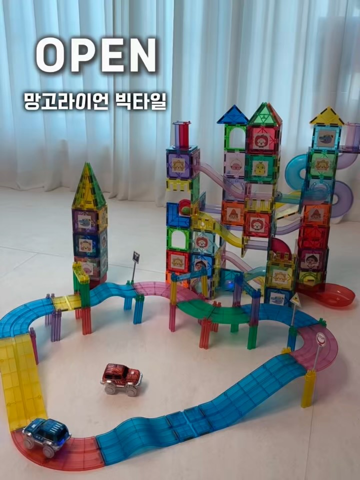 #망고라이언 #자석타일 🔖’링크‘ 남겨주세요. 핫딜링크 바로 보내드릴게요 신상은 못 참지✨ 책 맛집 망고라이언에서 나온 빅타일 3종 (빅타일 / 카트랙 / 망고런) 일단 가격이 너무 착해요착해🥰 3종 각각 5만원대!! 망고 캐릭터 들어간 타일이라 망고러버 다오니는 완전 푹 빠져있다는🤩 ‼️추가 구성품은 한정수량‼️ 이렇게도 놀고 저렇게도 노는 👉 놀이가 계속 확장되는 열린교구✨ 색깔 맞춰서 길 만들고 카트랙 연결해서 차 굴리고 근데 이게 그냥 지나가는게 아니라 👉 가운데 통로를 딱 맞춰야 움직여요 그래서 아이가 “어? 왜 안되지?” 하면서 맞춰보는 과정이 약간 코딩처럼 생각하게 만들더라고요…🧠 그리고… 오르골 넣어서 돌아가는 순간 다온이 박수치고 난리났어요ㅋㅋ👏🏻 📍구성도 꽤 알차게 준비했어요 ✔ 빅타일 100p ✔ 망고런 104p ✔ 카트랙 61p + 미니 마그네틱타일까지 (확장해서 놀 수 있는 구성까지 같이 준비해둠🔥) 망고러버라면 이건 그냥 지나가면 안될 느낌…♥️ 🔴공구혜택🔴 ✅빅타일&카트랙 2세트 구매시 가격 뚝⬇️ ✅3종 모두 구매시 1만원 할인 ✅빅타일 2종 구매시 3천원 할인 ⭐빅 타일이 없는 집 이라면 빅타일 2세트 추천⭐ 🎁구매인증이벤트[구매완료+전번뒷번호 4자리] 카드랙 포함 3세트 이상 구매자에게 트랙도형 2종 제공 구매 전 고객-망고그램에서 빅타일3종 도안 다운가능