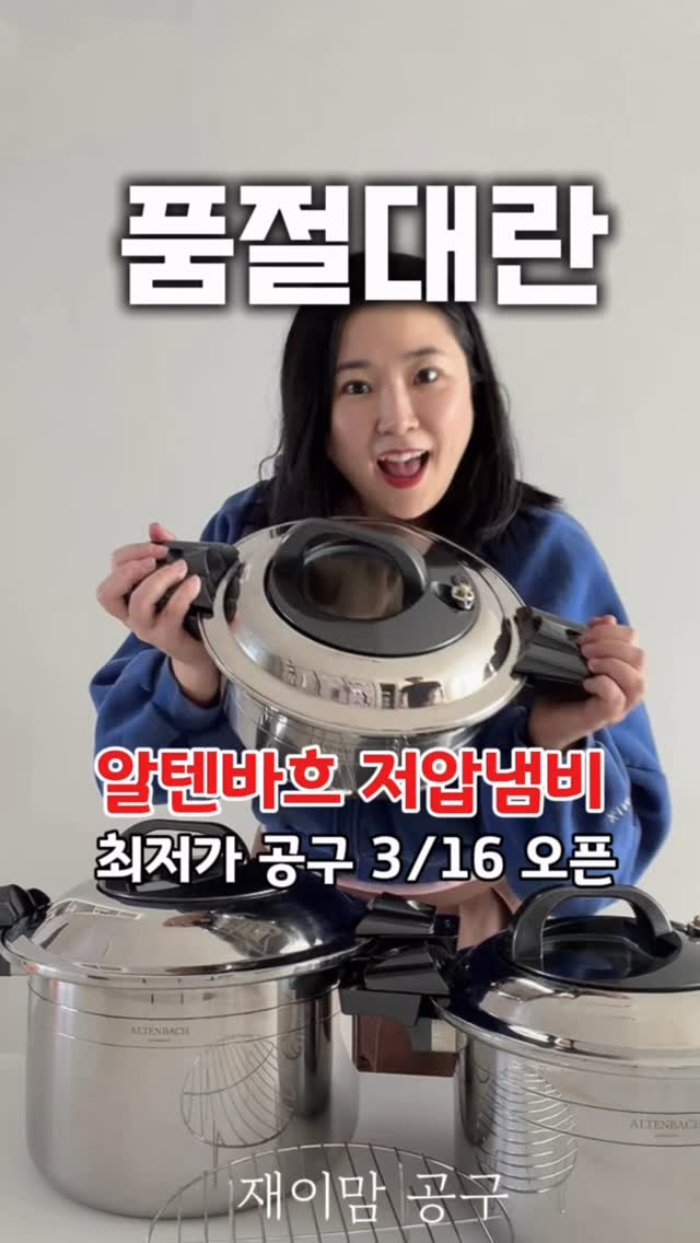 품절대란 🔥알텐바흐 저압냄비🔥 3/16 최저가 공구 오픈해요! 네이버적립금도 챙기세요💚 압력솥과 스텐냄비의 장점만 모았어요 모든 열원에서 사용 가능하고 내솥은 최고급316Ti 통5중 구조로 온도와 압력을 잘 유지해서 압력조리로 맛이 끝내줘요!! 찐~~한 국물요리 좋아하시거나 요리시간 빠르게 단축하고 싶으신분들 요거 꼭 쟁이세요! 사이즈는 4L 7L 11L 총 3가지!! 빠르고 간편하게 맛있게 요리해요! ✔️가스/인덕션/ 모든 열원에서 사용 가능 ✔️선착순 이벤트있어요✨ 저압냄비 최저가 공구 알림 필요하시면 ⭐팔로우+알림⭐댓글 남겨주세요🩷 * 제 프로필링크에서 문자 알림 신청도 가능합니다 #알텐바흐저압냄비 #저압냄비 #알텐바흐 #저압냄비공구 #알텐바흐저압냄비공구