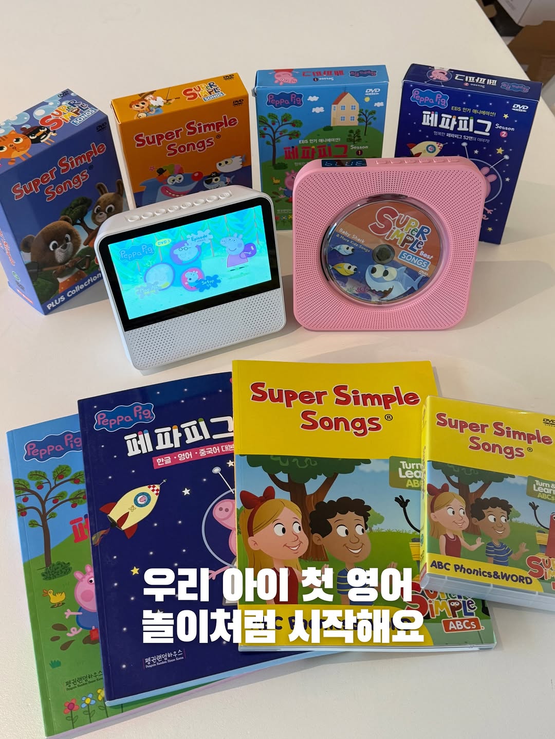 아이랑 집에서 자주 쓰게 될 아이템, 사파 플레이어 🫶🏻 무선(내장 배터리)라 전원선 없이 충전해서 사용하고, 거실·아이방·주방까지 어디든 두고 쓰기 좋아요! CD 재생 가능해서 유아 전집, 구판 교재, 동요·영어 CD 학습용으로도 활용하기 좋고요. 블루투스 · 라디오까지 지원돼서 단순 CD/DVD가 아니라 다 되는 올인원 플레이어예요 😊 리모컨이 있어 조작도 쉬워서 아이도 어른도 부담 없이 사용 가능해요. ✅ 슈퍼심플송 & 페파피그 DVD 우리 아이 첫 영어, 어렵게 시작하지 않아도 돼요! 슈퍼심플송은 쉬운 멜로디와 반복되는 가사로 노래 따라 부르며 영어에 익숙해지고, 페파피그는 가족의 일상 이야기를 통해 아이들이 실제로 쓰는 생활 영어를 자연스럽게 접할 수 있어요. DVD라서 유튜브처럼 끝없이 이어지지 않고, 정해진 콘텐츠만 보고 끝나면 멈춰요. ✔️ 공식 워크시트 파일 제공 ✔️ DVD + CD 연계 학습 가능 그래서 보고 · 듣고 · 따라 하는 집콕 영어 루틴 만들기 좋아요. 사파 CD/DVD 플레이어와 함께 사용하면 👉 틀어주기만 하면 끝! 따로 준비할 것도 없어요~ 📆 공구기간: -3/30 👉🏻 자세한 구성 & 가격은 구매 링크에서 꼭 확인해주세요 :)