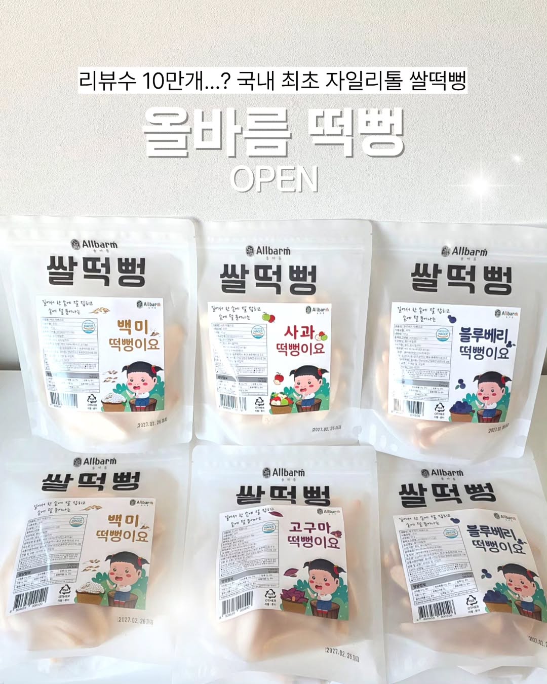 리뷰수 10만개? 국내최초 자일리톨 쌀떡뻥! 올바름 간식 모음전 OPEN 올바름 떡뻥X요거쪽쪽 요거트 📍4/9(목) 오전 10시 동시 OPEN 💬댓글에 [링크] 남겨주세요! 구매링크 DM으로 바로 보내드릴게요💌 🎁선착순 이벤트(30명) 구매 선착순으로 떡뻥 1봉지씩 더 드려요!! ______________________________________________ 현대백화점 입점한 아기 간식 브랜드 올바름~!! 독도 과자로도 들어보셨을거에요. 떡뻥, 롱과자, 팡과자, 과일칩, 후레이크, 자일리톨 사탕까지 전체 풀라인업으로 가져왔어요!!✨ 2~3천원대로 부담없는 최저가로 가져왔으니 미리미리 쟁여두세요!.. 떡뻥은 아기 첫 간식으로도 많이 주지만 한번 맛본 아기는 외출 필수템이 되어버렸다... 자꾸 달라고 해서 많이 먹게 되면 걱정되는데 올바름 제품은 전부 성분이 좋아서 안심하고 먹이는 제품이에요!! ✔️국내산 유기농 쌀과 재료 ✔️ 기름에 튀기지 않은 건강한 제조 방식 ✔️ 향료·설탕·유화제 무첨가 ✔️설탕 대신 낮은 당지수의 자일리톨 사용 ✔️ 현대백화점 입점 상품 ✔️ 담백하고 건강한 맛, 바삭하고 부드러운 식감 ✔️ HACCP 인증 위생 시설에서 생산 이번 라인업에서 가장 유명한 올바름 떡뻥은 다른 떡뻥보다 손에 잘 안묻고 먹고 나서도 입 주변이 깔끔하더라구요! 이게 찐 차별점..!👍 그리고 먹어도 속이 더부룩하지 않고 가벼워요! 당뇨있으신 어른분들도 이거로 드시더라구요. ✔️소비기한도 대부분 27년 1~3월까지로 천천히 두고 드셔도 충분해요!! 💗벨라맘 PICK💗 종류가 너무 많아서 고민되신다면 ✔️올바름 떡뻥 6봉 세트 (백미2+사과1+고구마1+블루베리2) ✔️자일리톨 팡 6봉 세트 (단호박2+시금치2+딸기2) ✔️과일칩 세트 (딸기4/사과4/바나나4 중 택1) 요렇게 3개는 꼭 담아보세요~~ 아가들 너무 잘 먹고 영양까지 챙긴 간식들이에요ㅎㅎ 가격도 잘 나왔어요~!!! 자세한 금액은 구매링크에서 확인해주세요!! 🚚25,000원 이상 무료배송 오전 10시 이전 주문시 당일 출고 ______________________________________________ 🔥생후 6개월부터 가능한 아기 간식 기획전🔥 요거쪽쪽 요거트 X 올바름 떡뻥 📍4/9(목) 오전 10시 OPEN 💬댓글에 [링크] 남겨주세요! 구매링크 DM으로 지금 바로 보내드릴게요💌 📅공구일정 4/9(목)~4/12(일) ❌일정 연장 없어요❌ #요거쪽쪽 #올바름떡뻥 #아기간식 #요거트 #떡뻥
