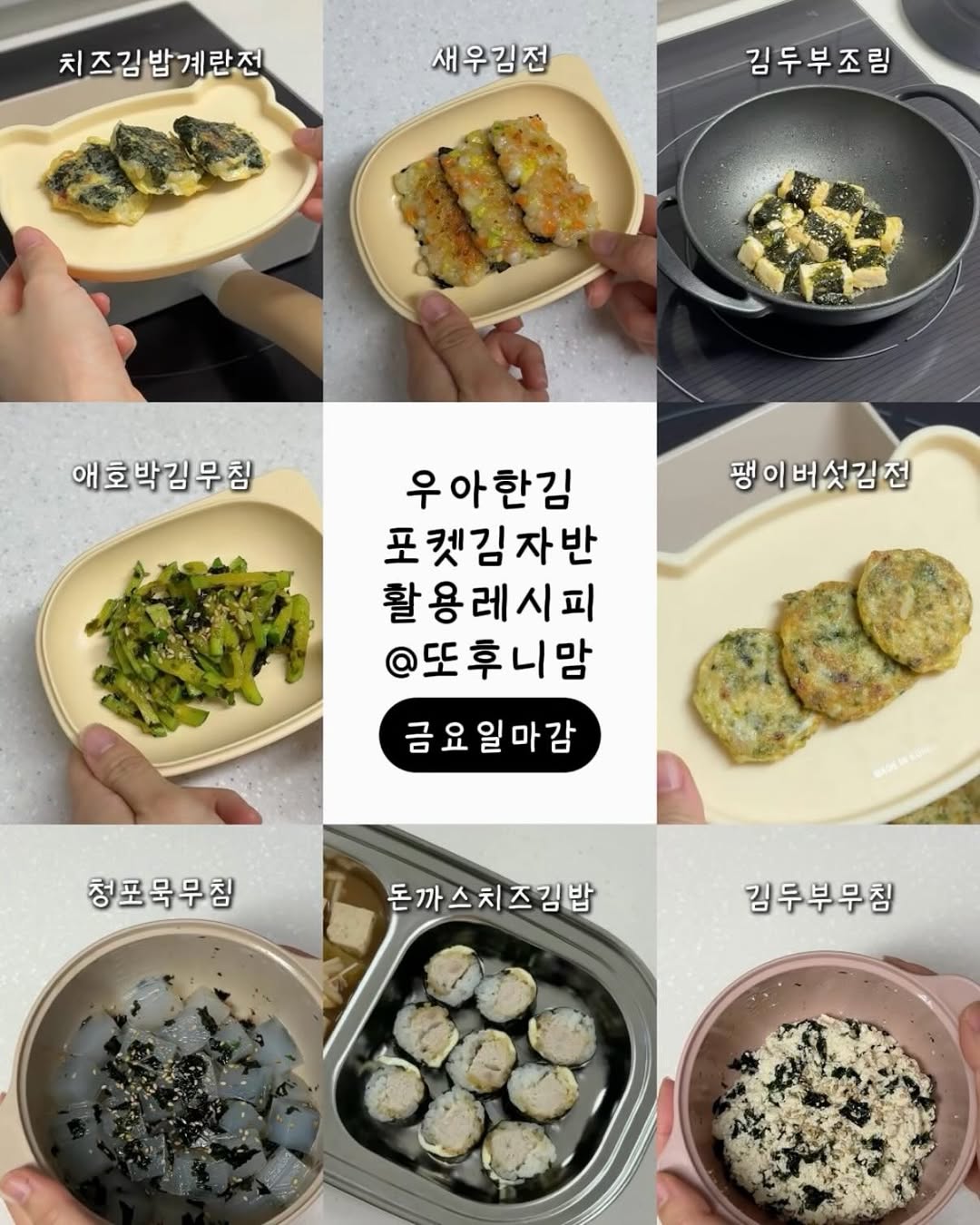 우아한김&김자반을 활용한 다양한 레시피를 소개하며, 공동구매가 진행 중입니다. 구매는 금요일(17일) 자정까지 가능합니다.